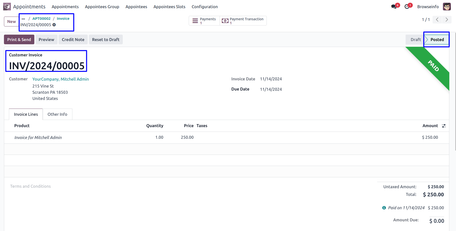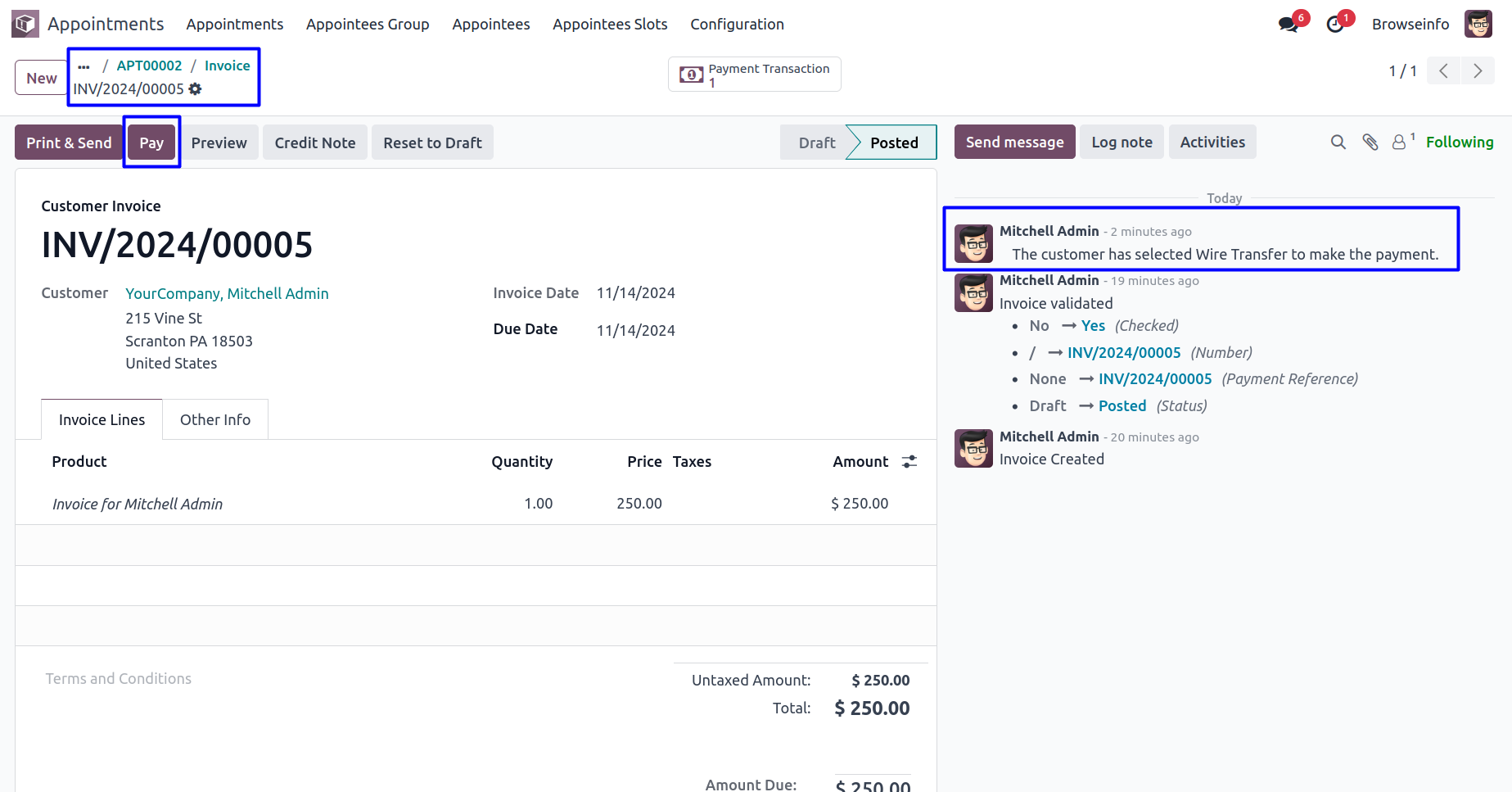 Register Payment for Appointment Invoice