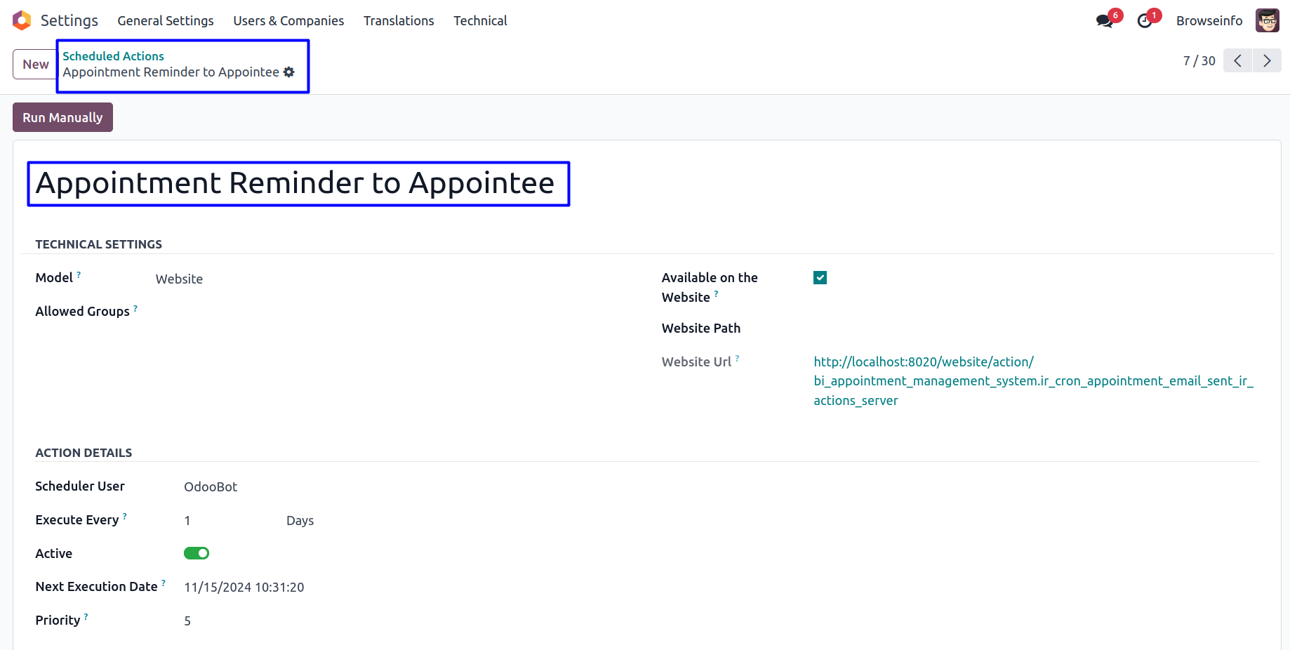Cron for Appointment Reminder to Appointee