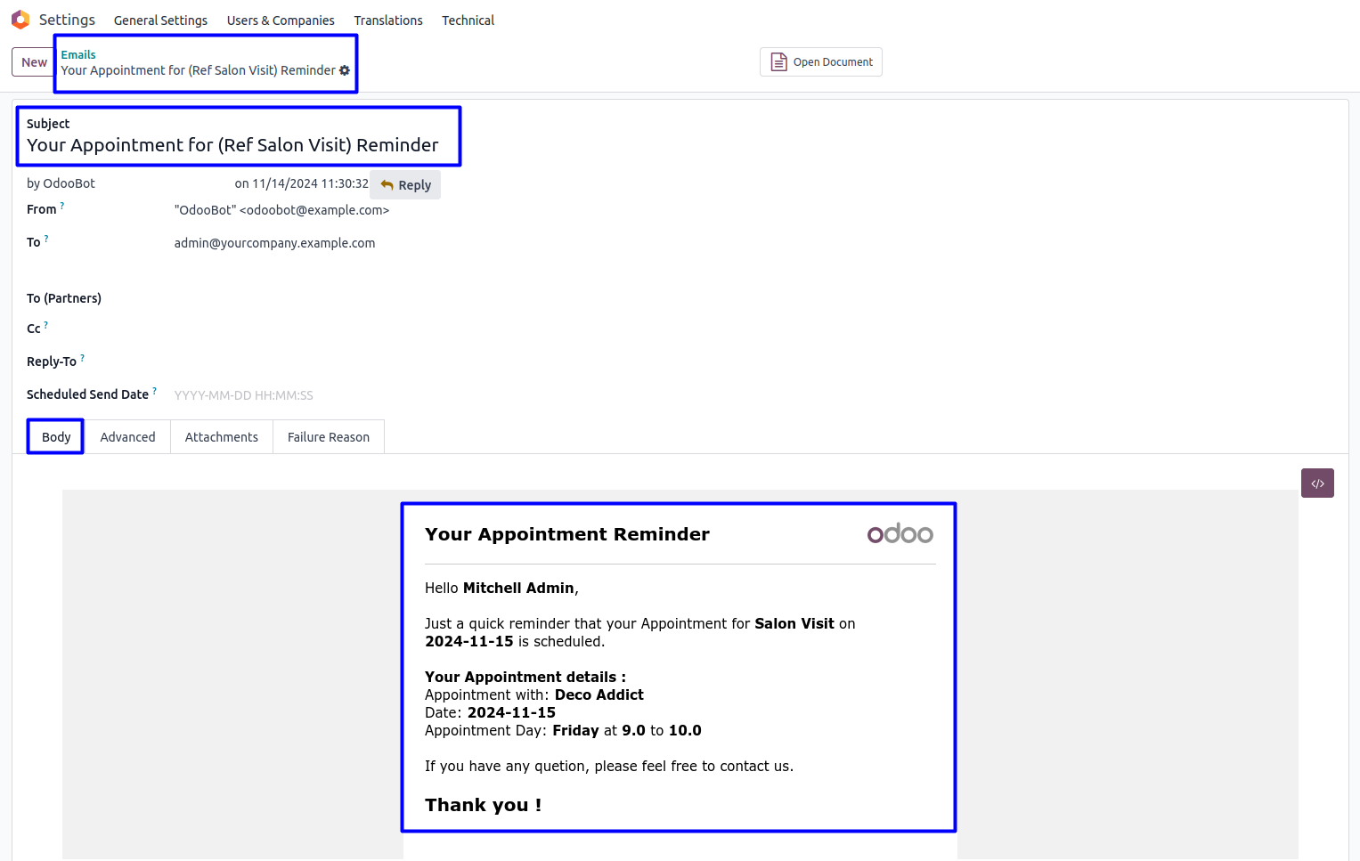 User have to enable 'Auto Sent Email Reminder' option to automatically sent email to appointee.