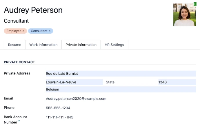Restricted access settings to protect employee's private information - emergency contacts, visa information, and more.
