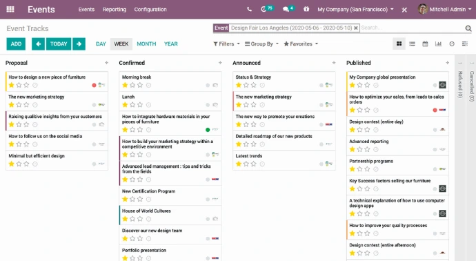 Add a presenter proposal form to your event page to allow visitors to submit talks and speaker nominations. Organize the validation process of every event or presentation and schedule them in minutes while also having a gantt view option.