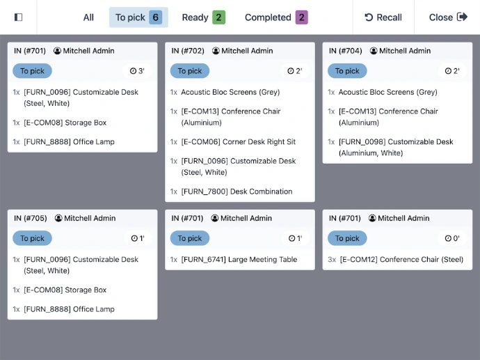 Click and collect. No more chaos between your selling channels. Allow clients to order online and pick up at the store. Preparation displays allows you to prepare large orders in advance.