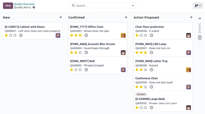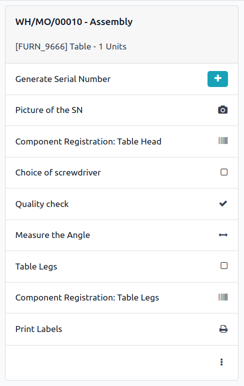 The Shop Floor app helps streamline your manufacturing line. Through the tablet-optimized dashboard, you can organize workers, workcenters, worksheets, quality tests, and much more.
