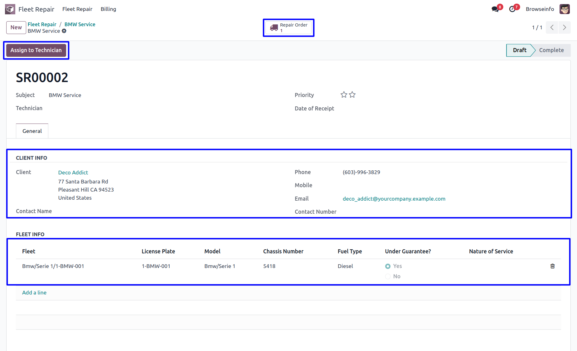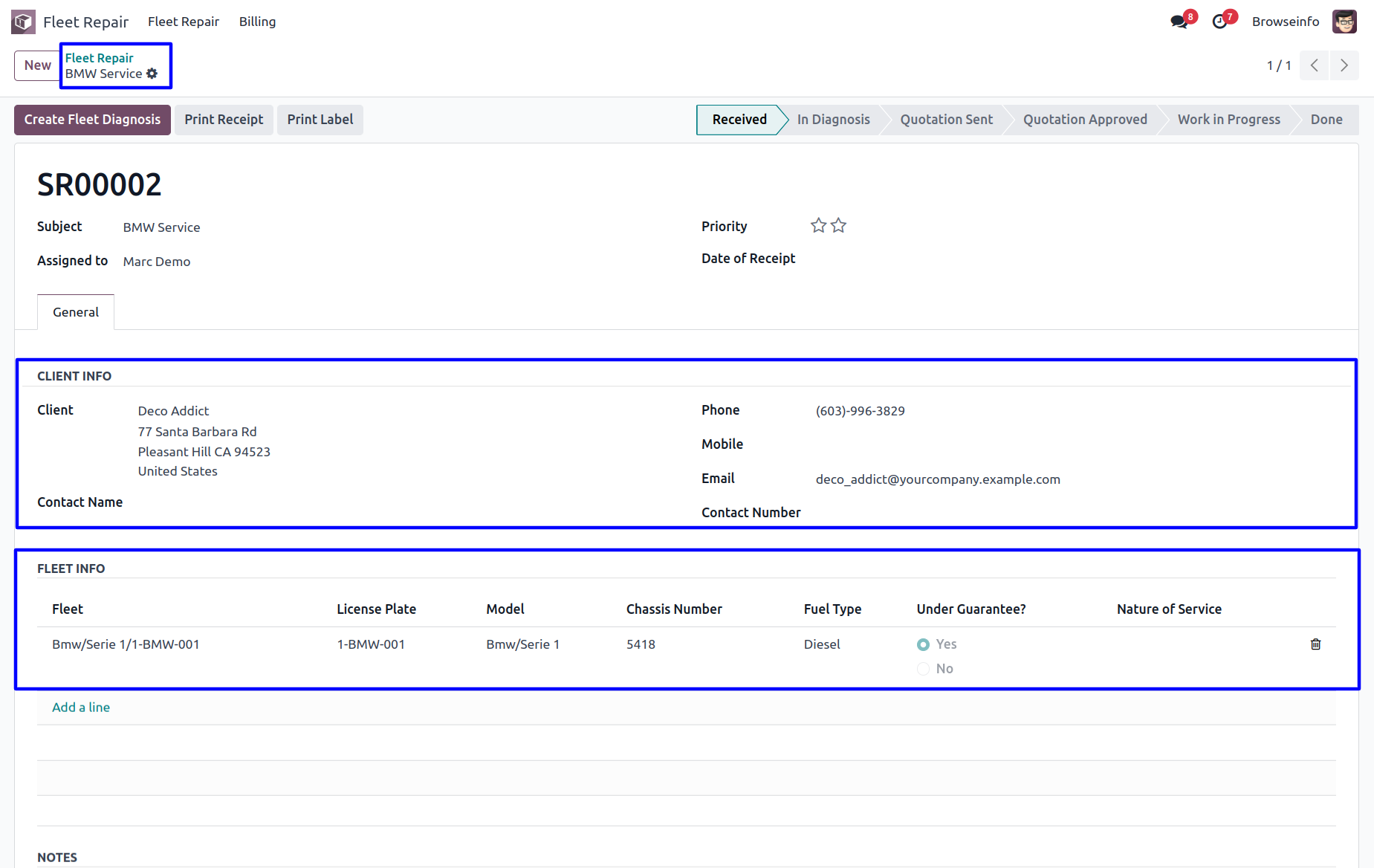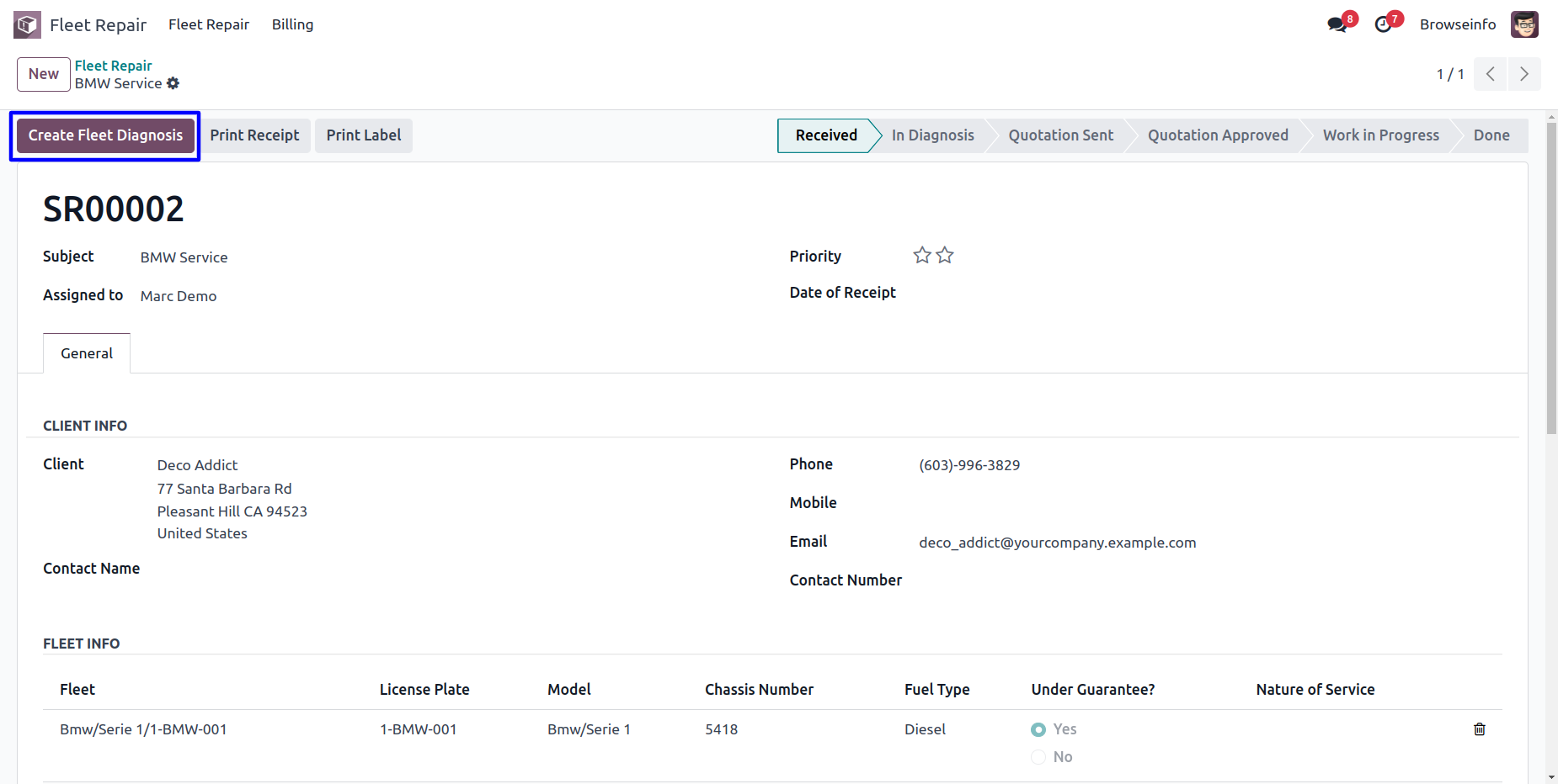 In this step, Technician will be assigned ,who will diagnose the car in future. If any part needs replacement or repairing that will be added,too.