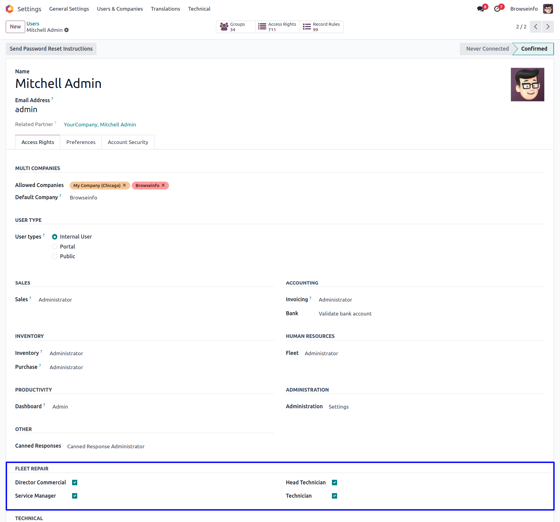 We have four different access groups for machine repair module.