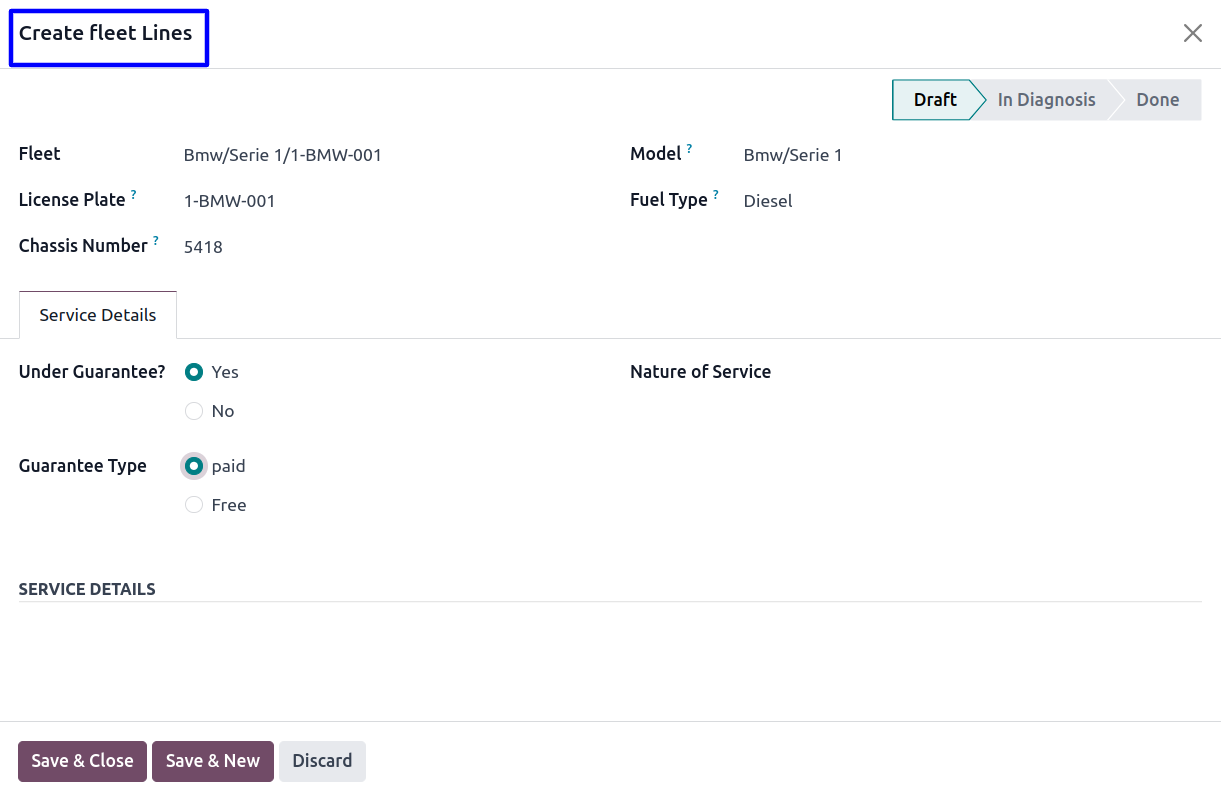 Fleet/Car & Service Details