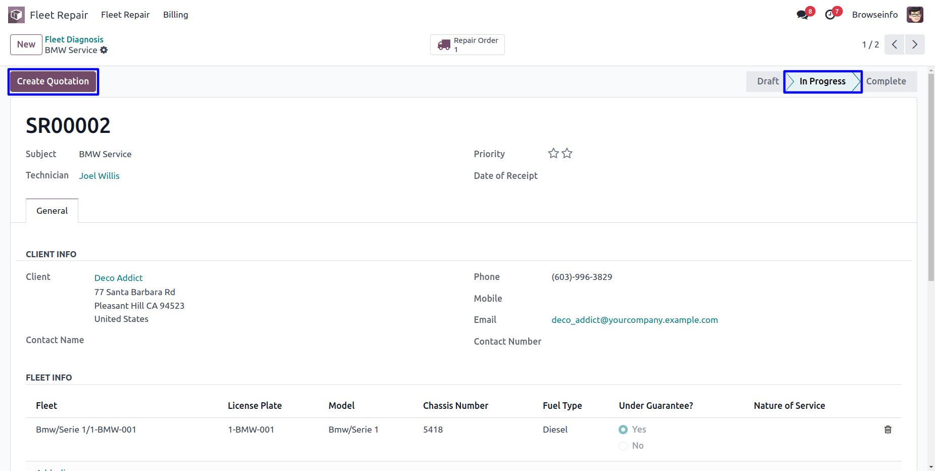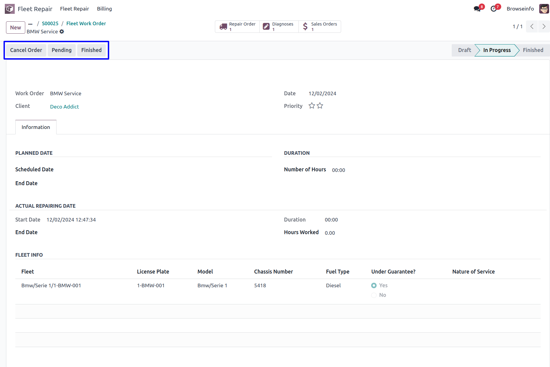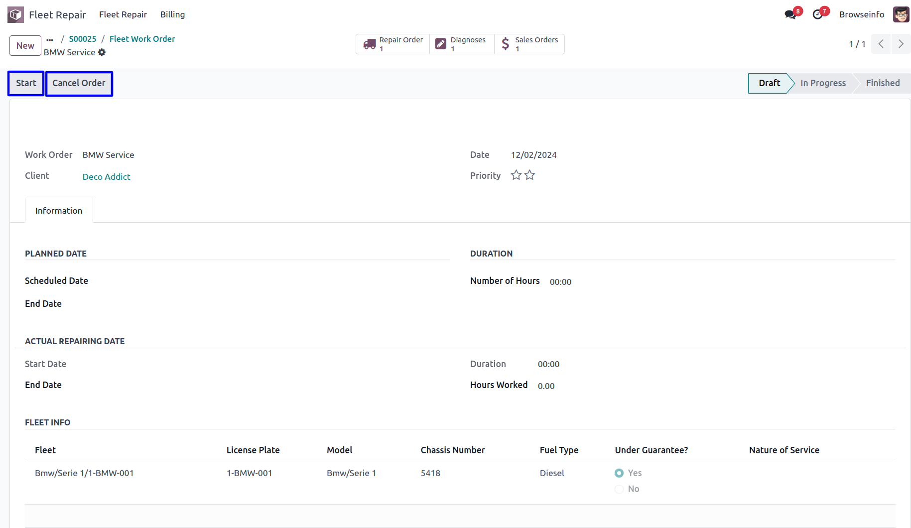 Create Fleet/Car Repair Order