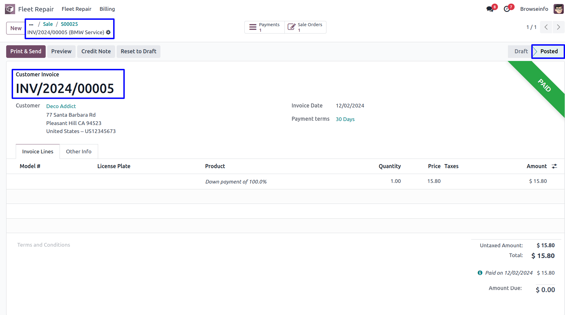 Fleet/Car Invoice Report