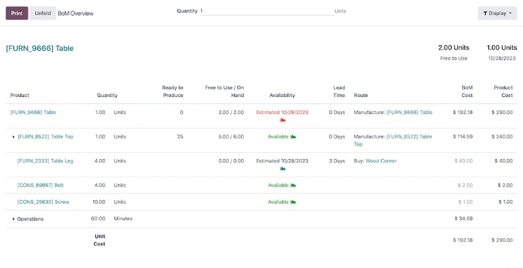 Using the Kit feature, your salesperson will be able to sell products that will be delivered as a set of components to assemble.