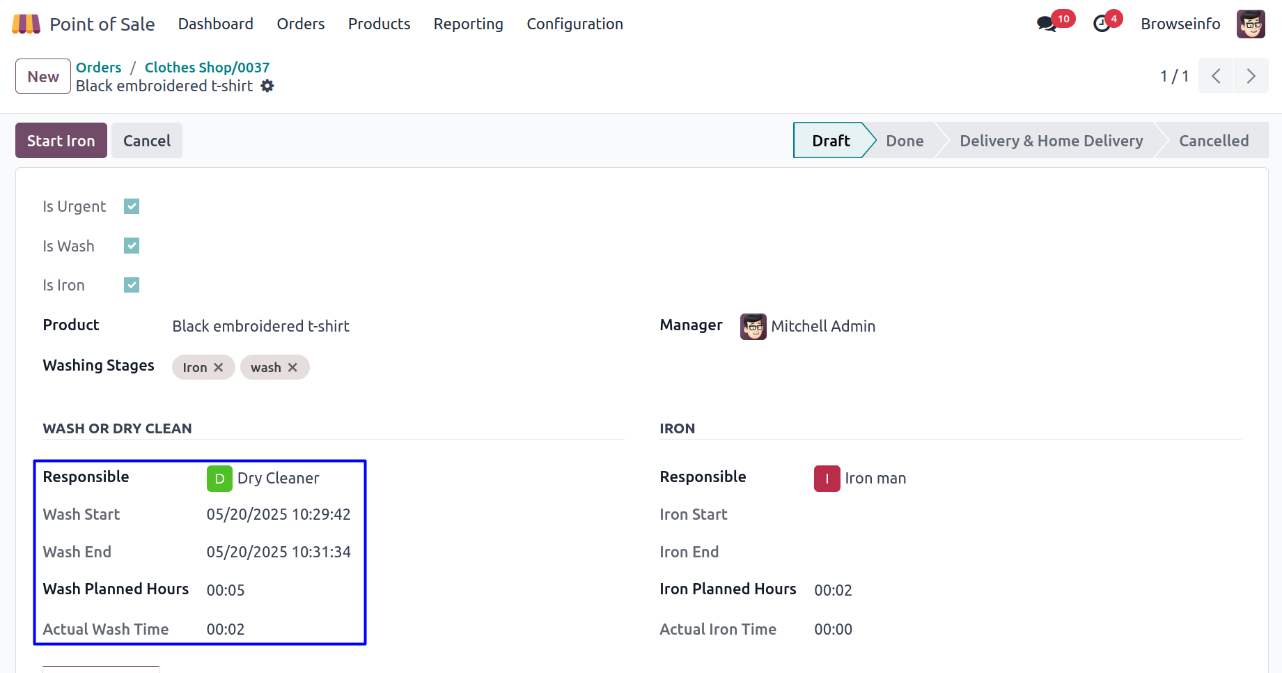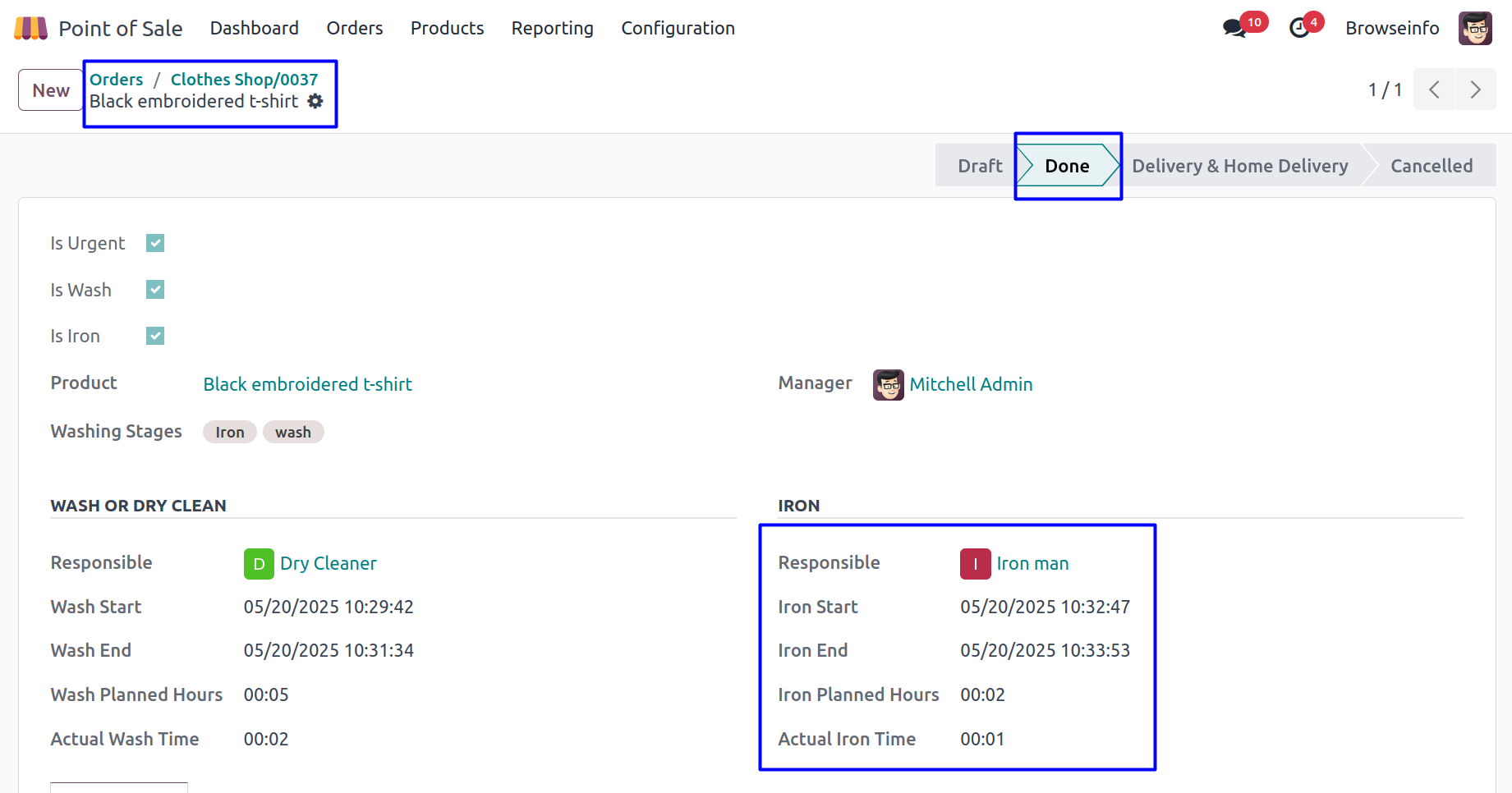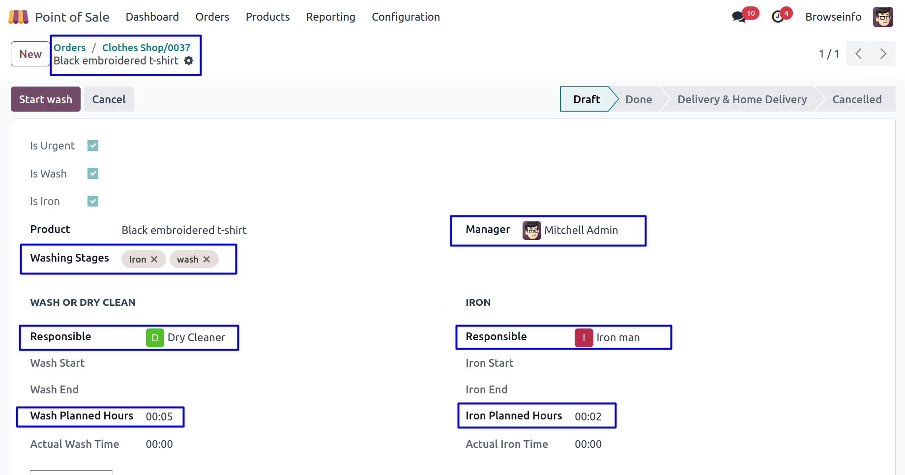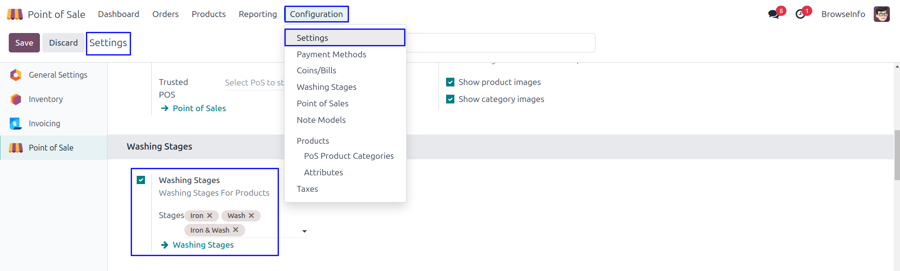 User can configure the washing stages for product in POS.