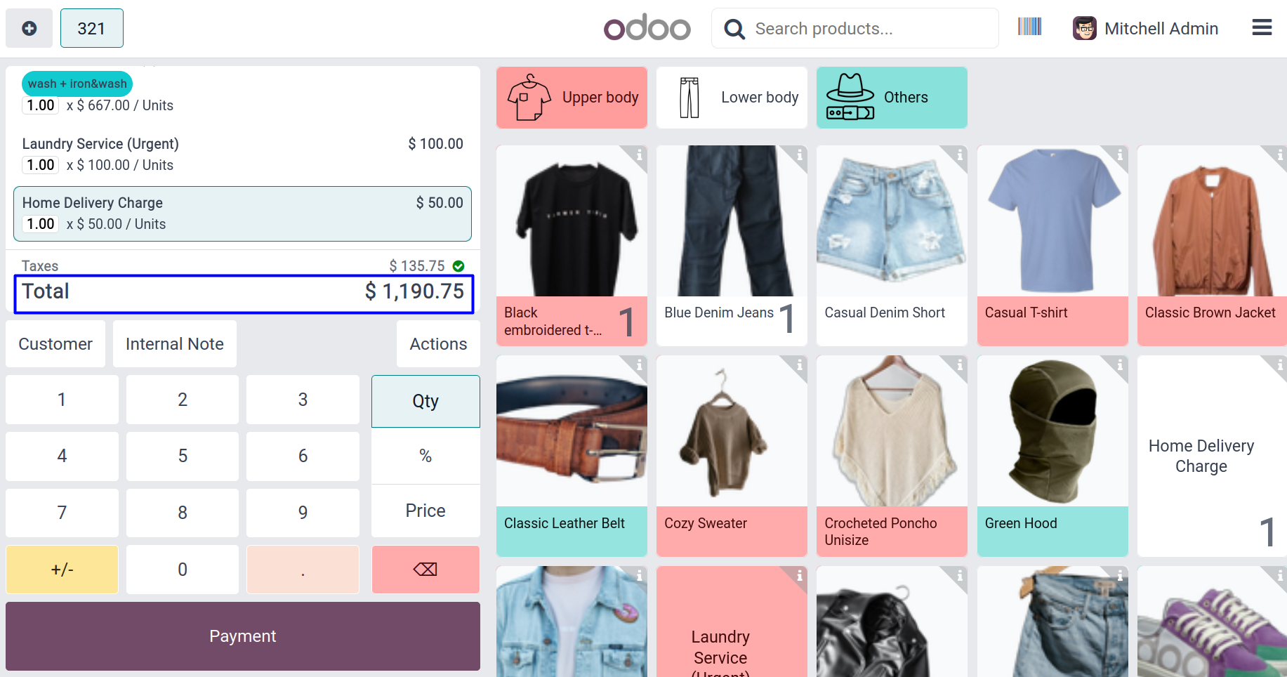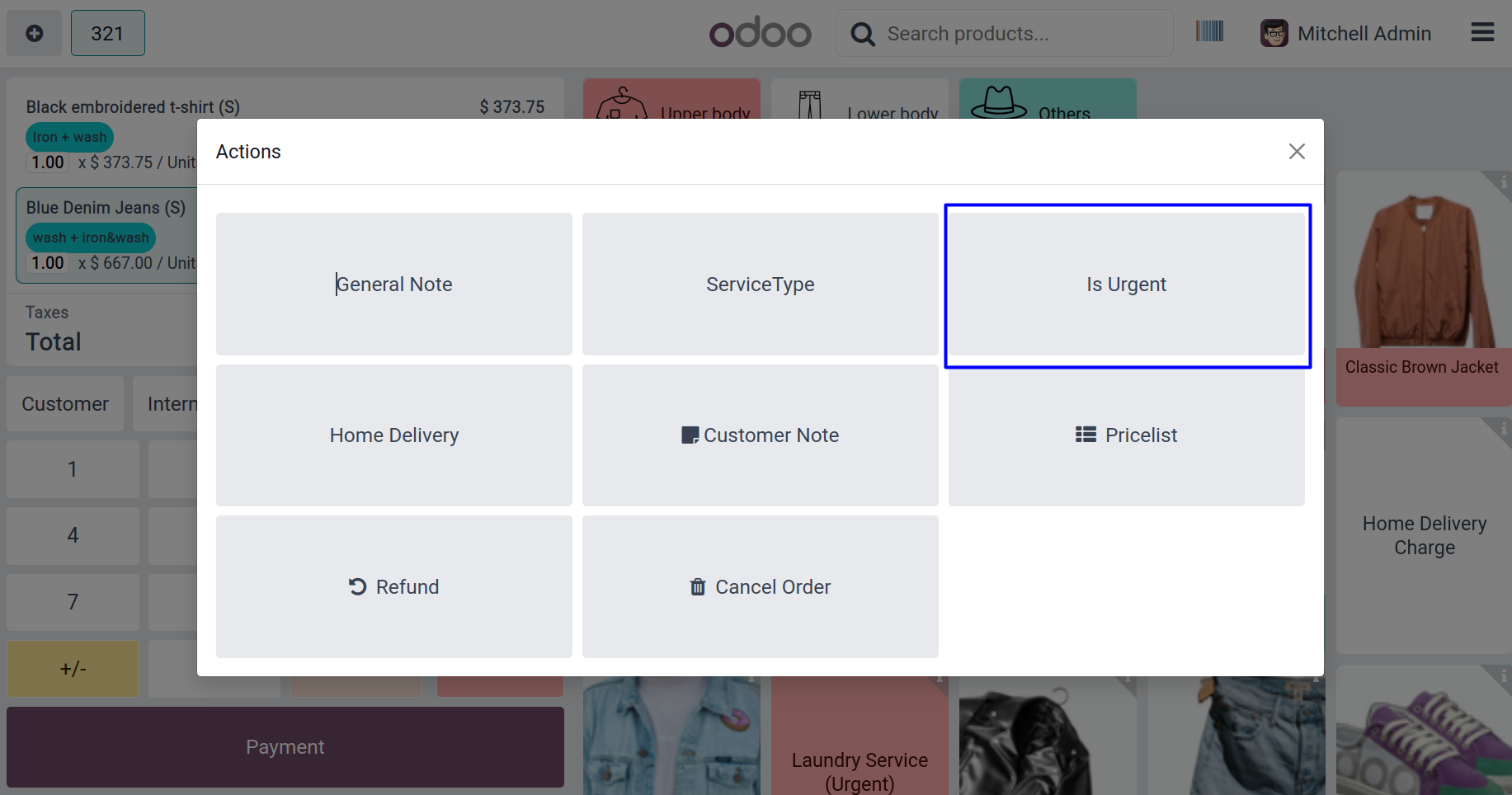 User can select the service type for laundry in POS.