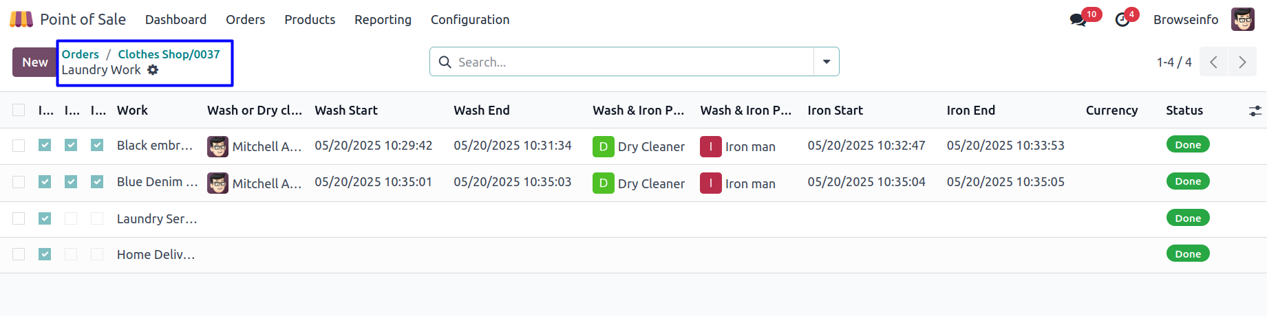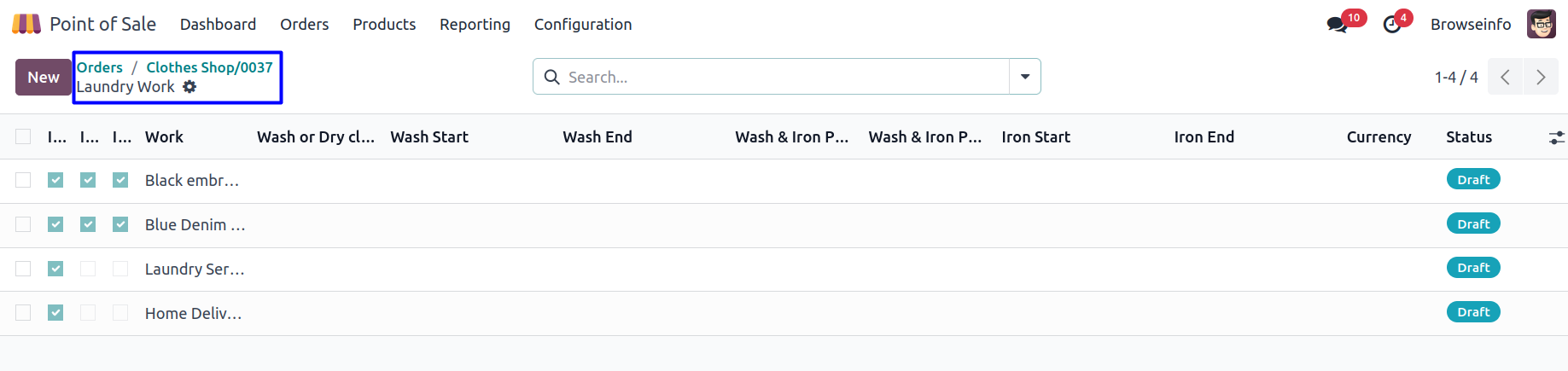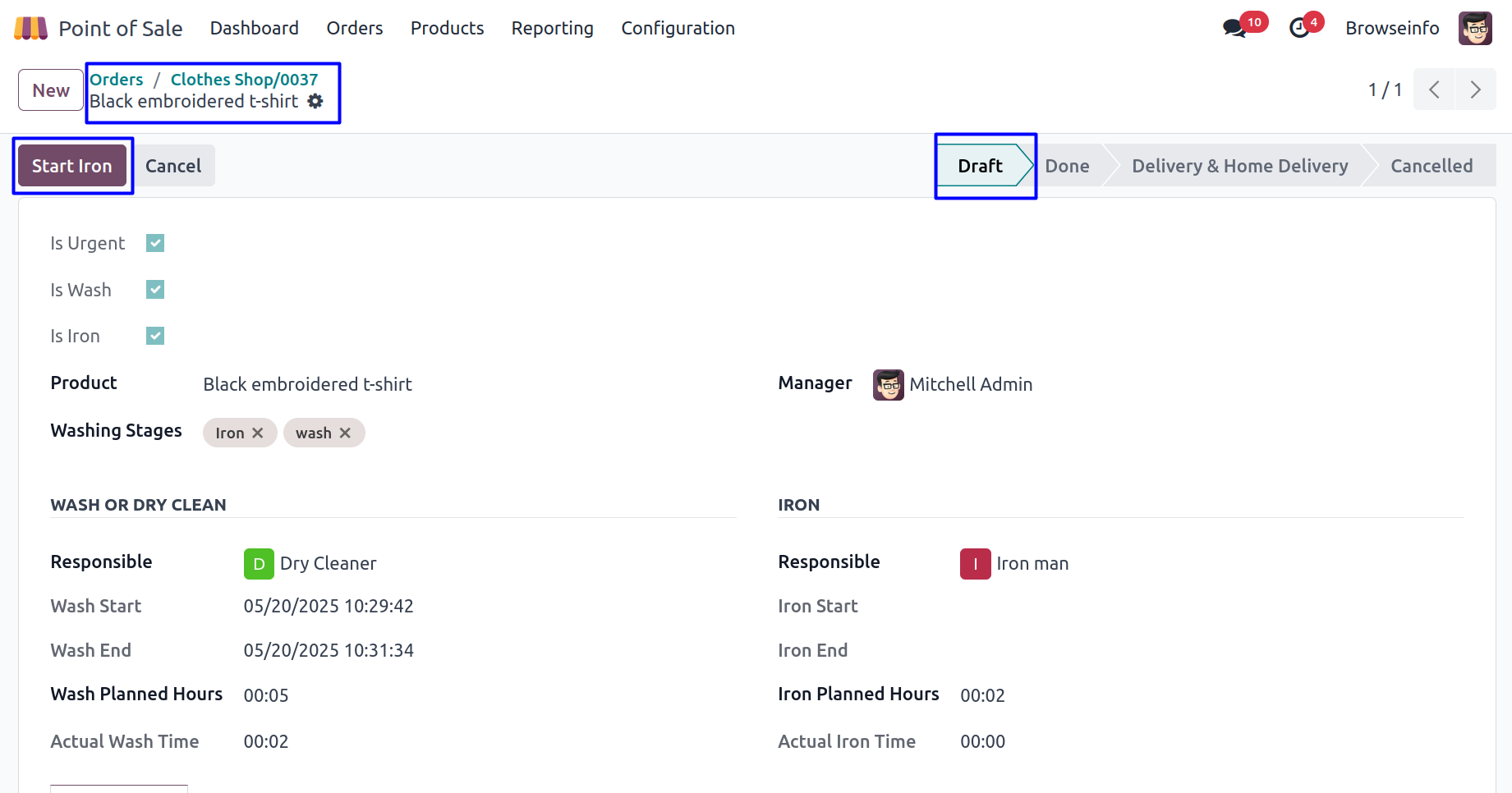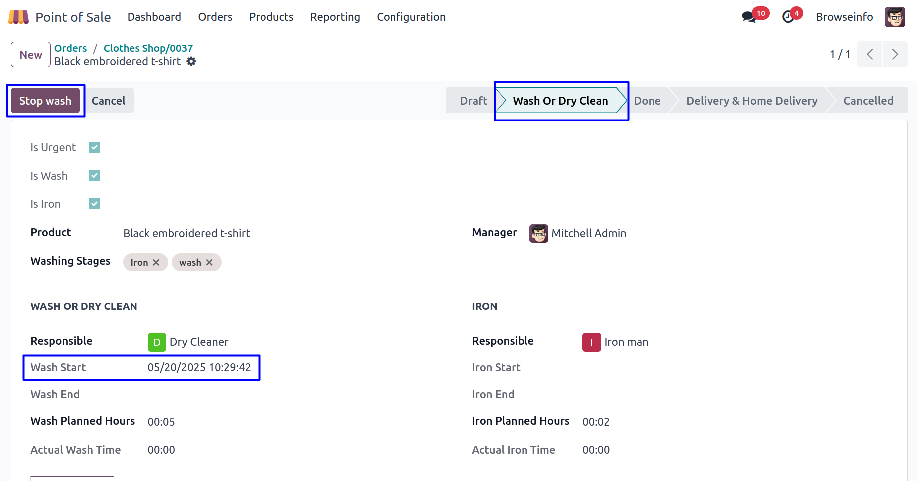 POS Configuration for Washing Stages