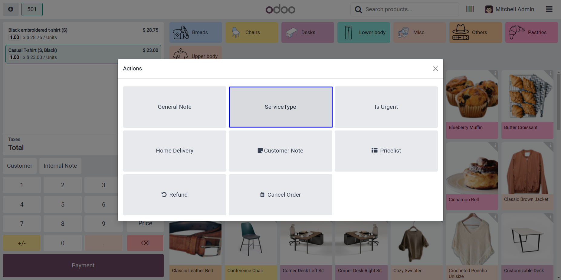 Select Service Type in POS