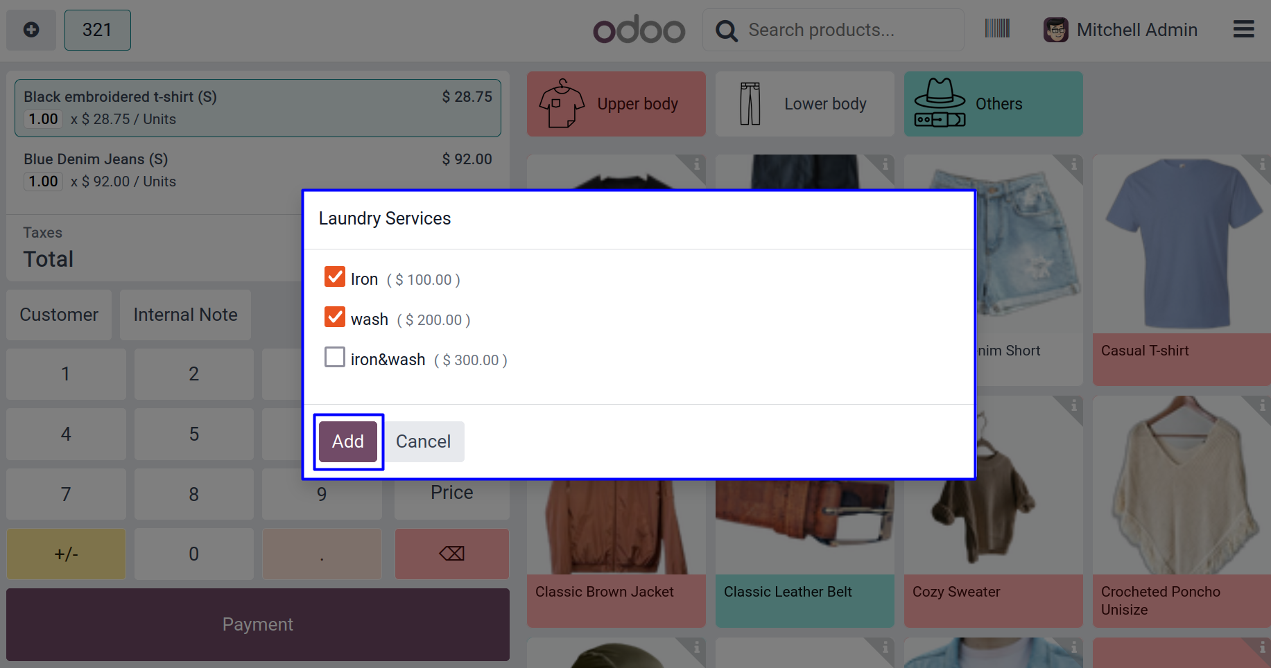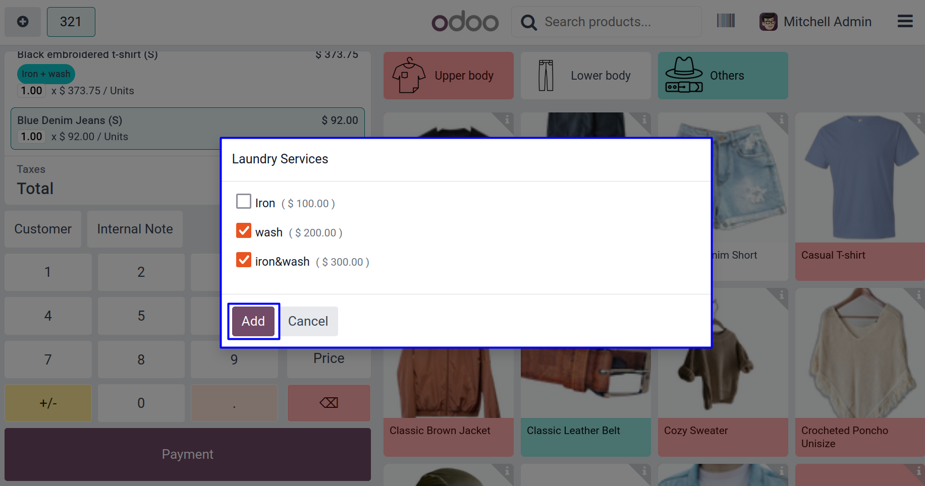 User can select multiple laundry service for specific product wise and click on 'ADD' button.