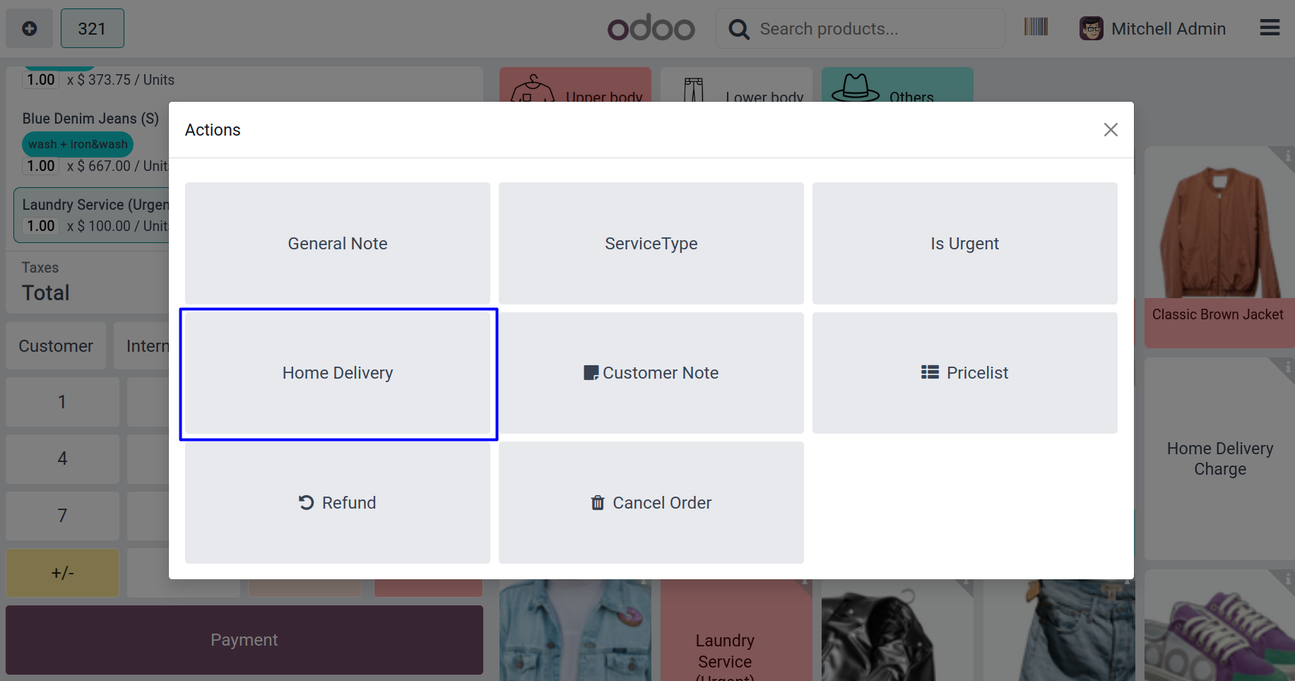 User can set the laundry service product and home delivery product.