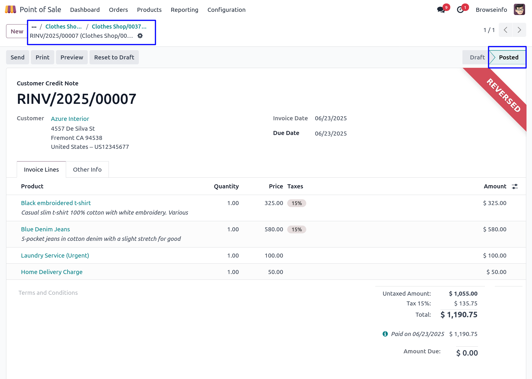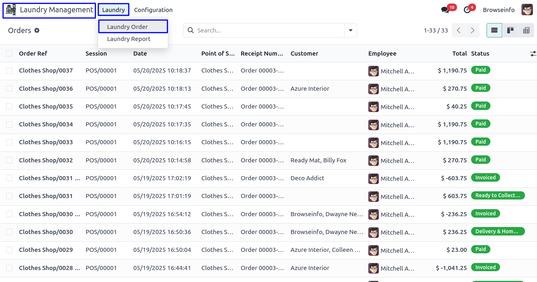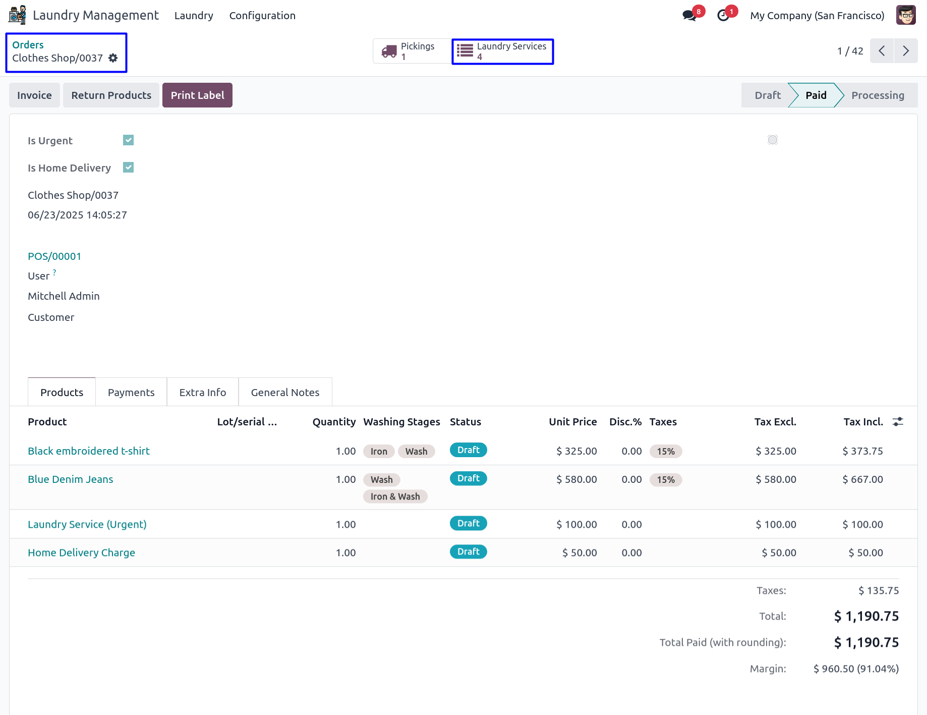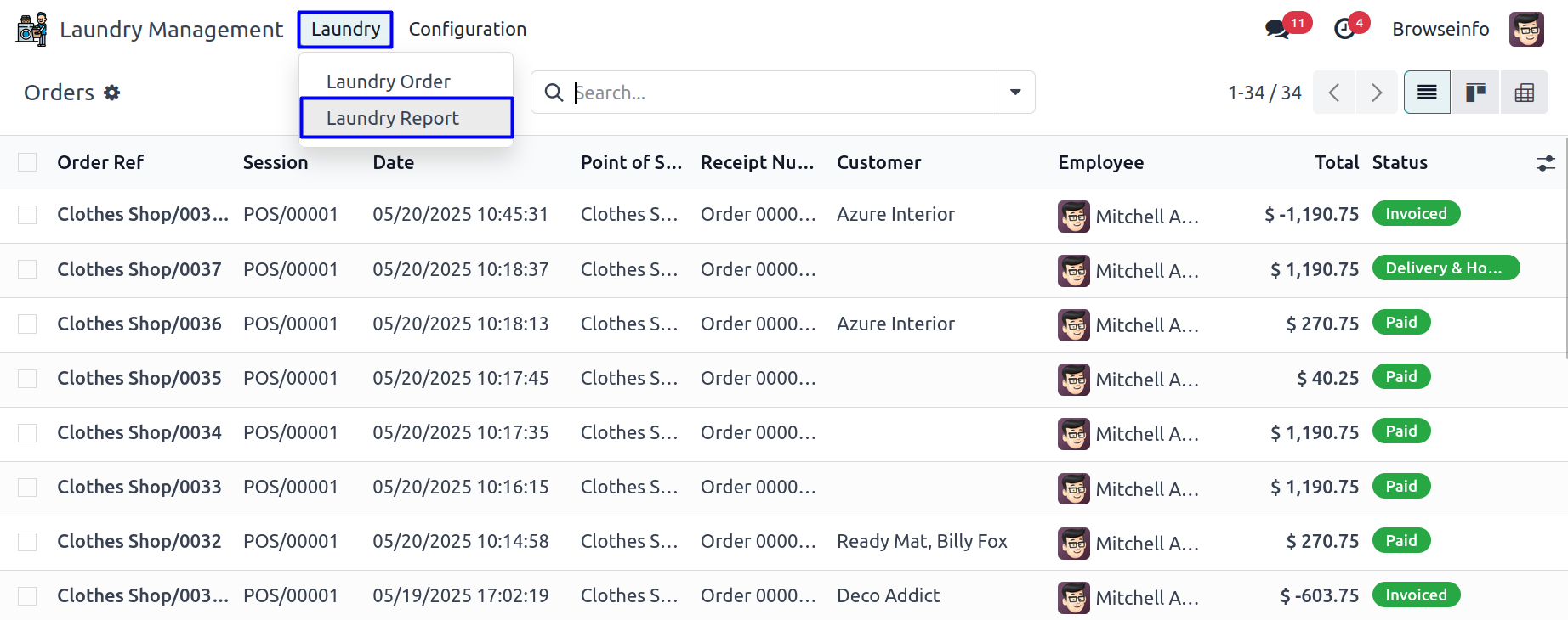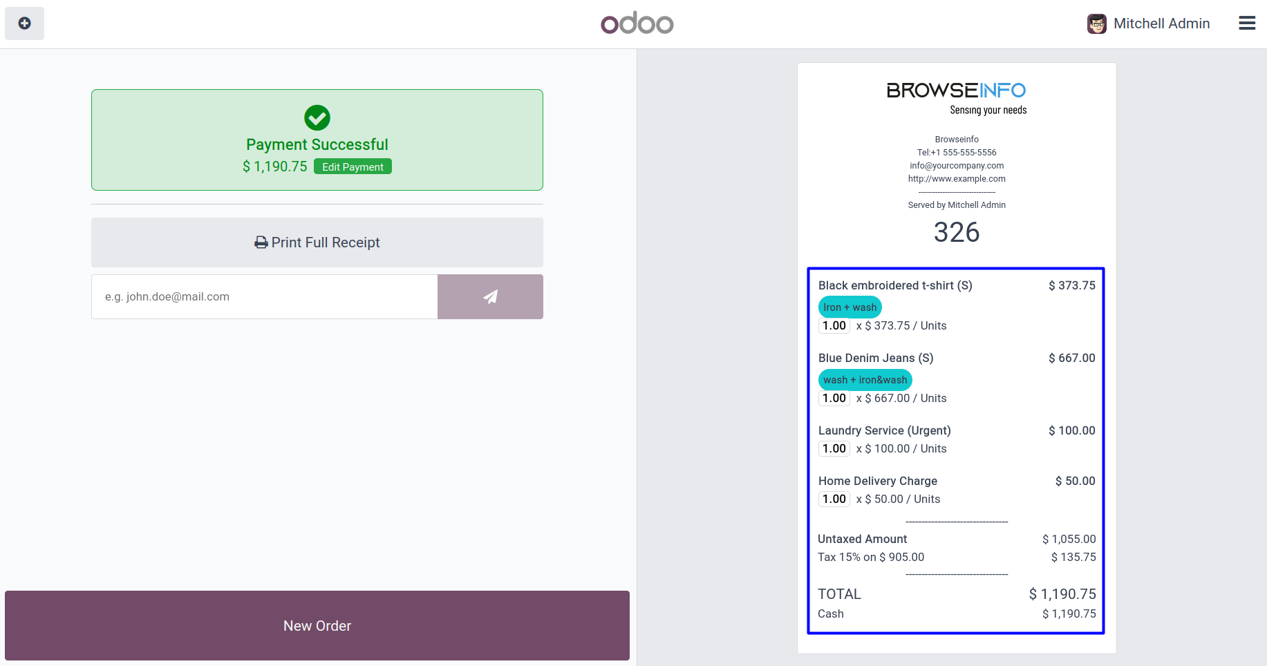 Display Laundry Services in POS Receipt