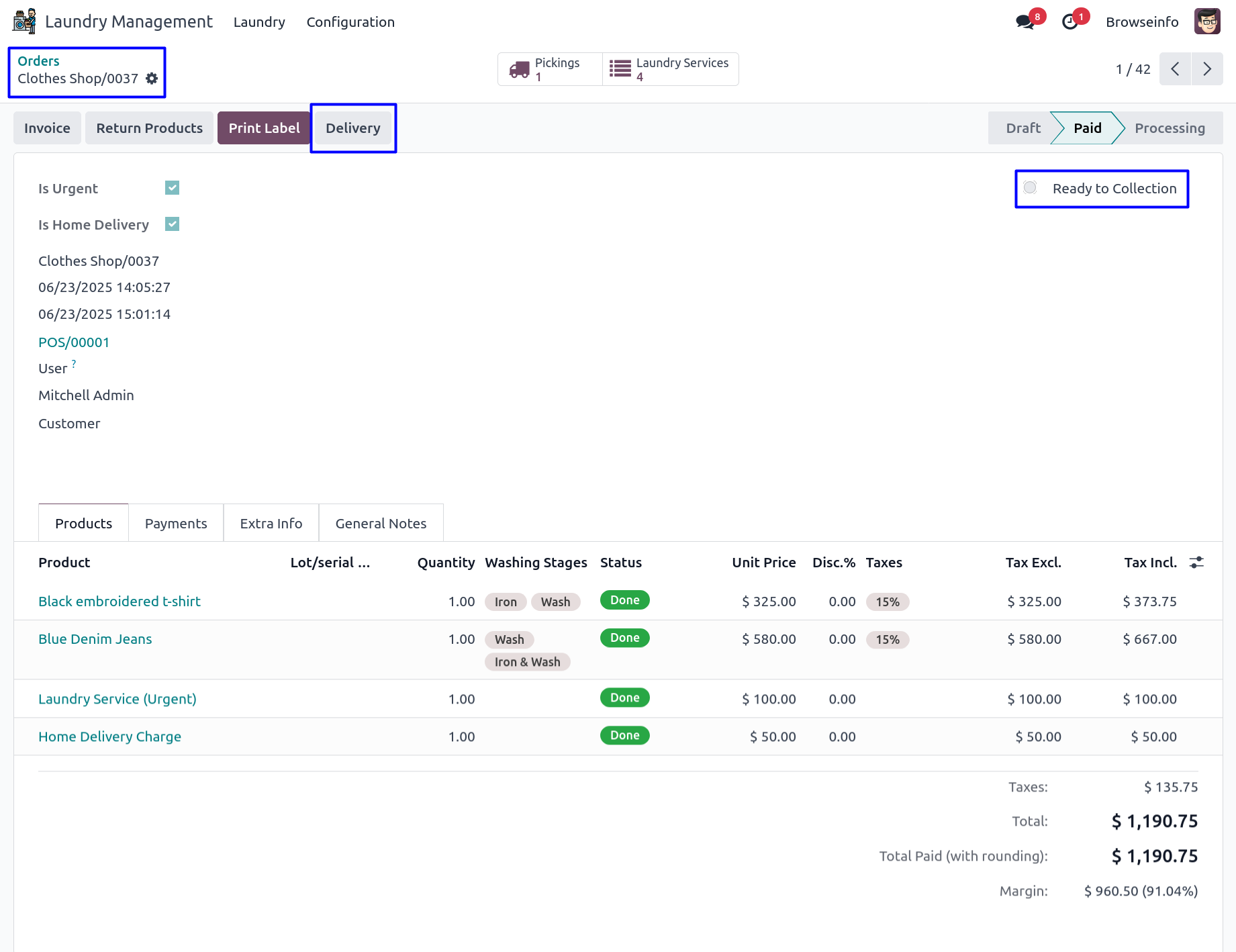 Delivery Button in Laundry Order