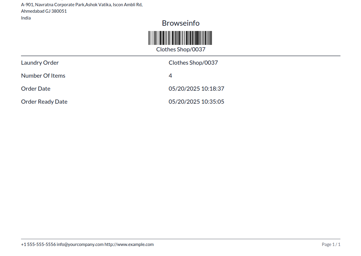 Printed Label of Laundry Order in PDF Format