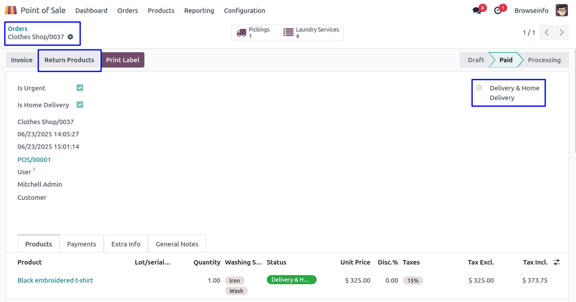 Delivery person can click on 'Delivery' button in laundry order.