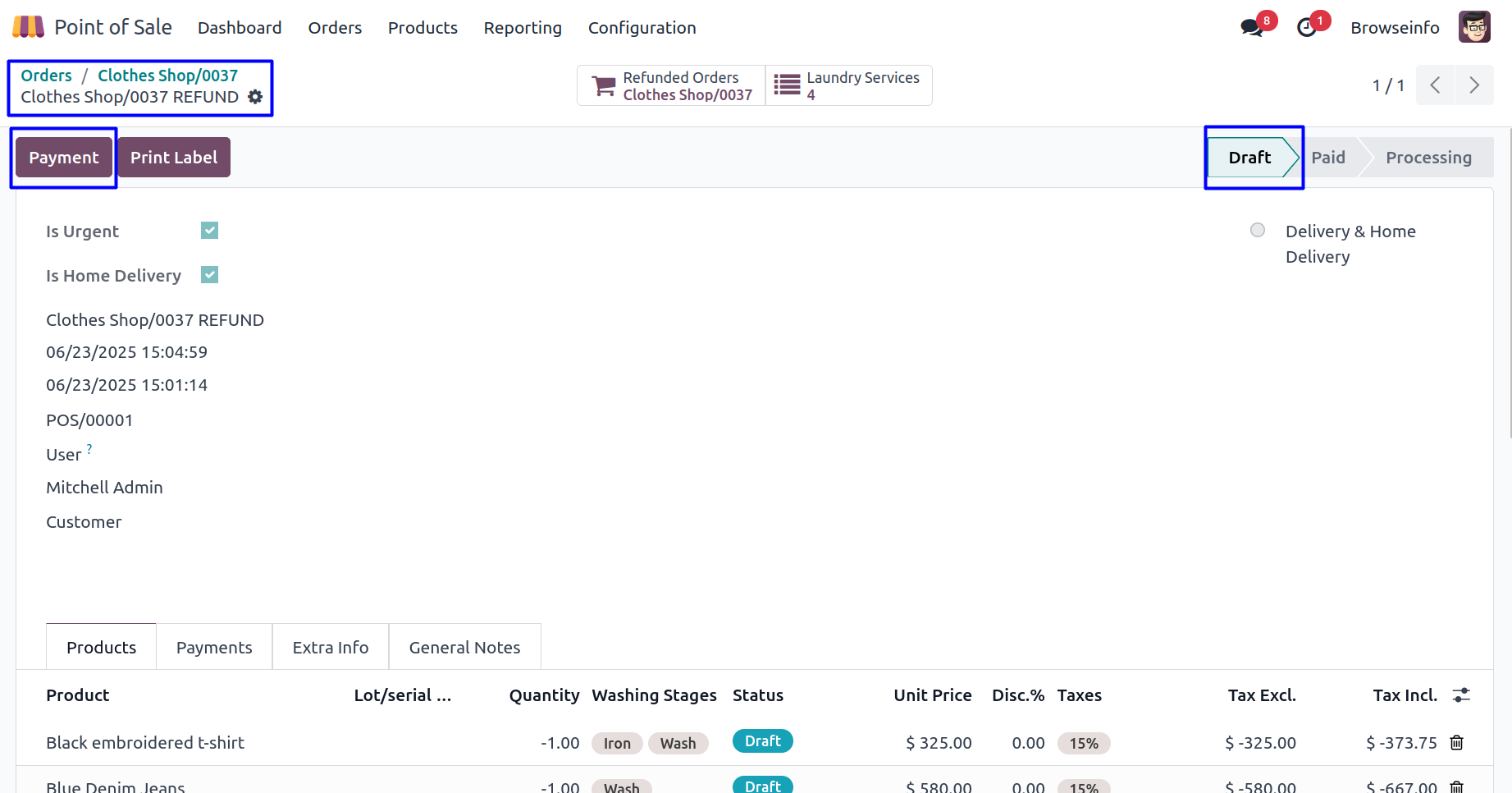 Make the payment of refund laundry order.