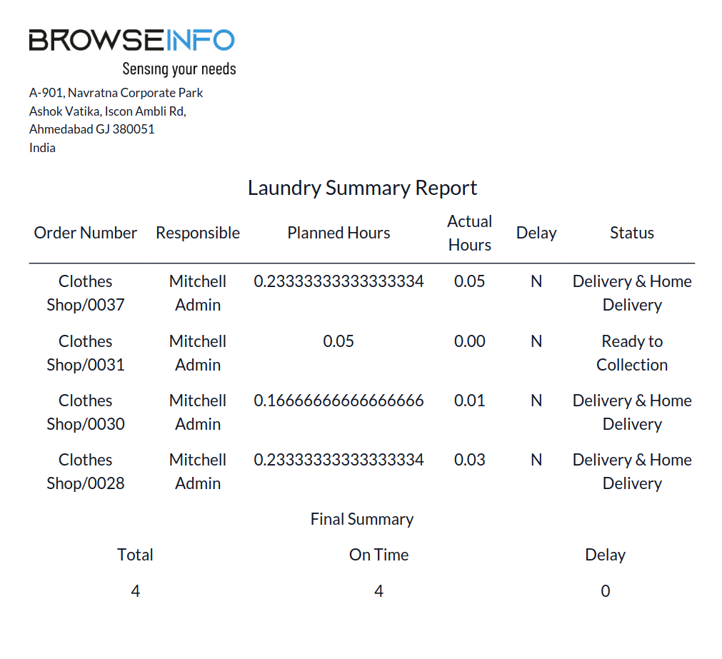 Laundry Summary Report in PDF Format