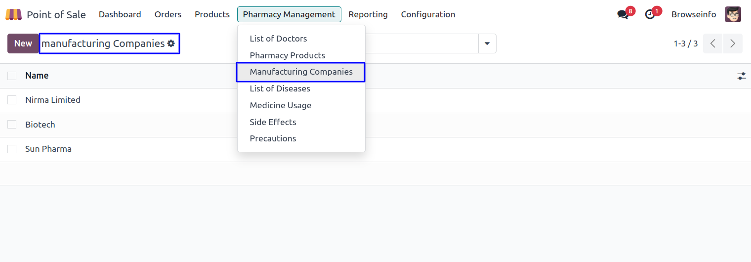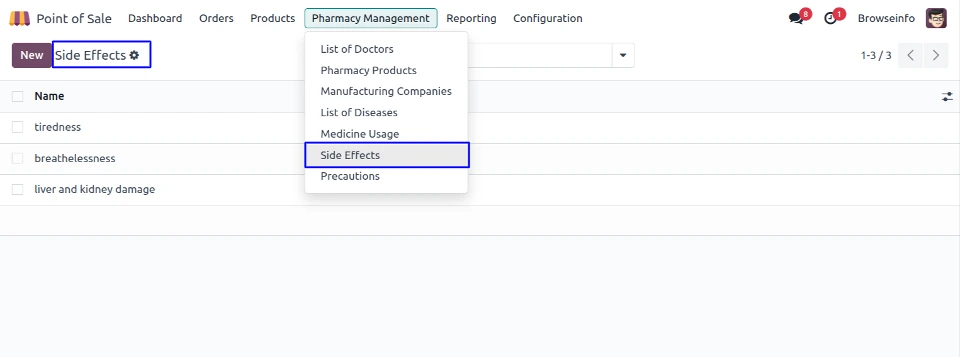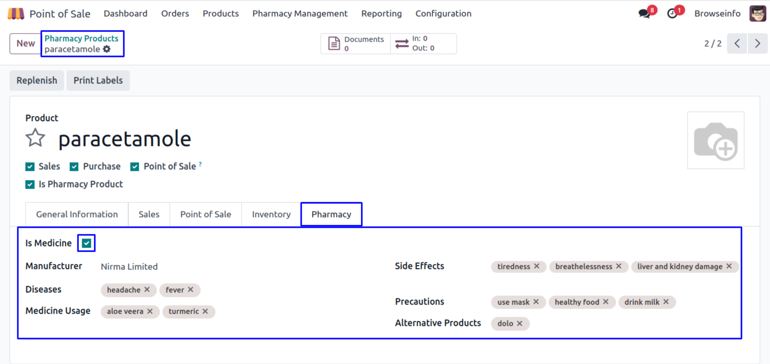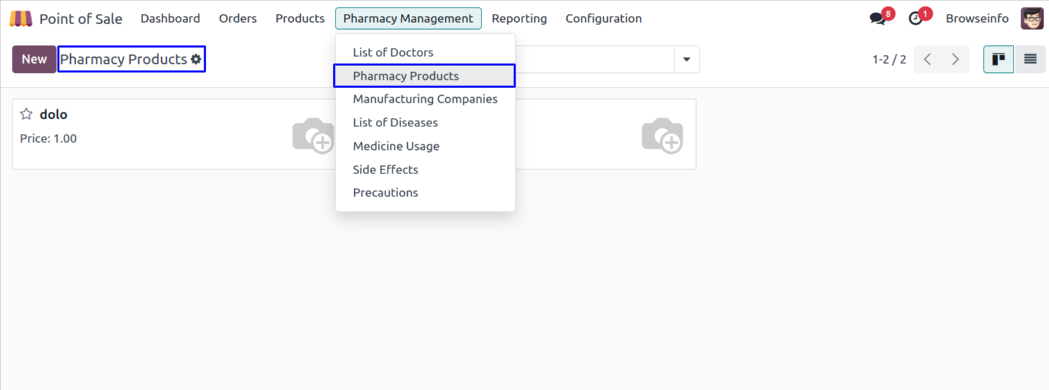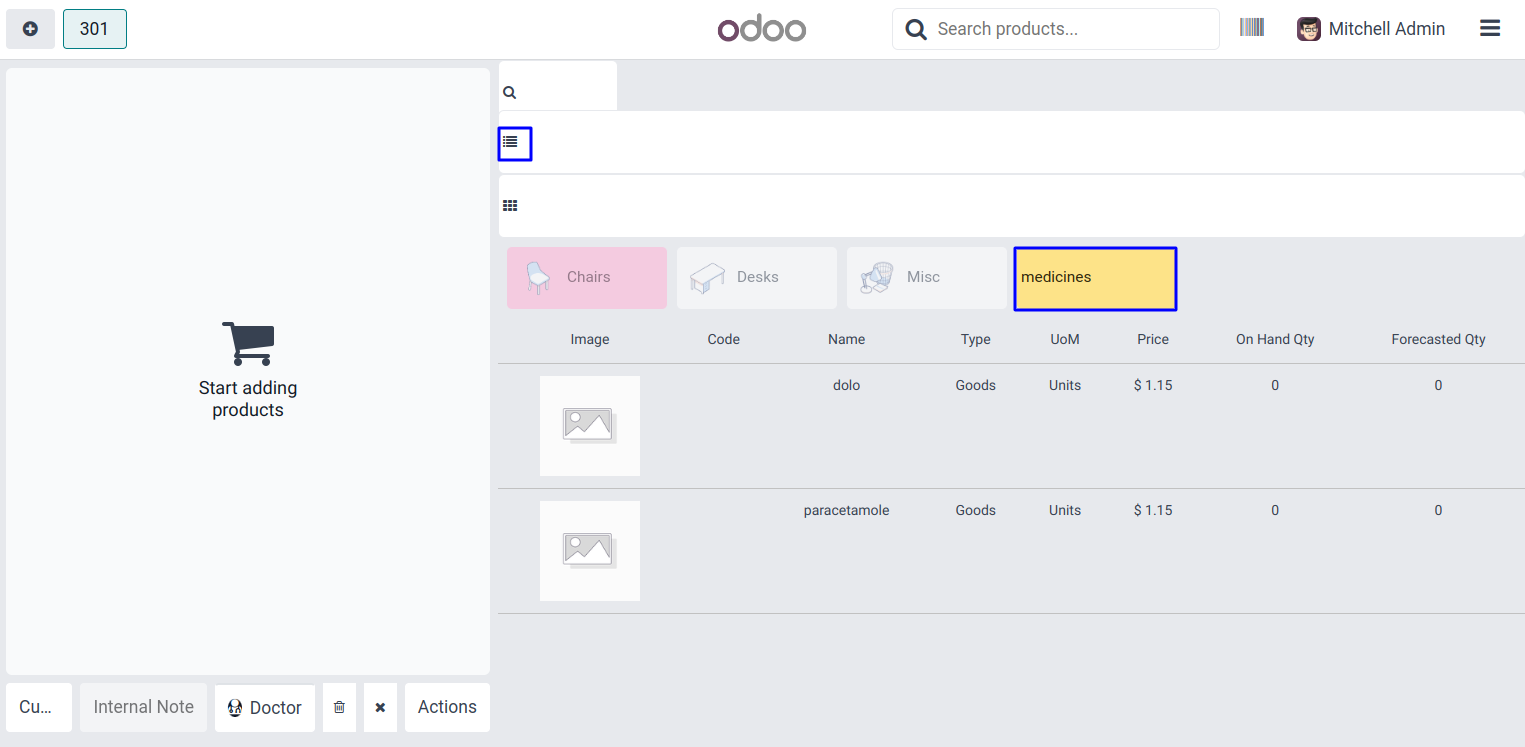 User can see the list view of pharmacy products in point of sale screen.