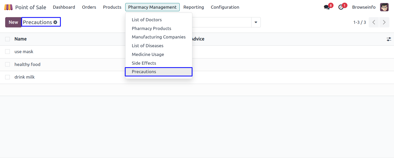User can create a precautions with advice