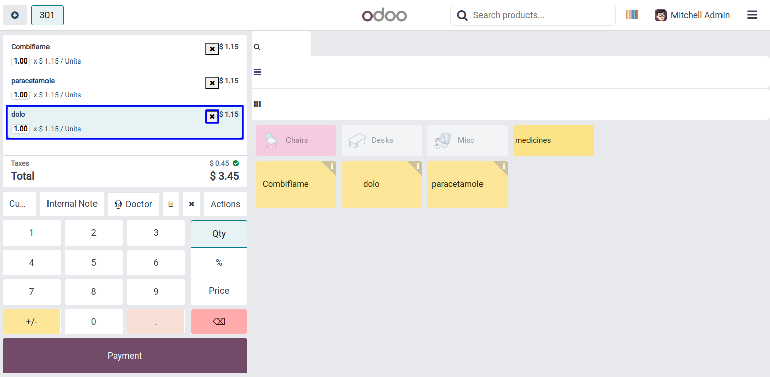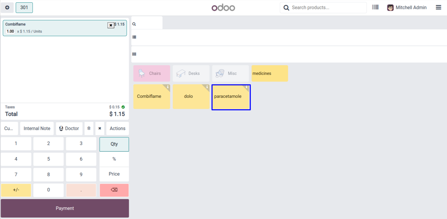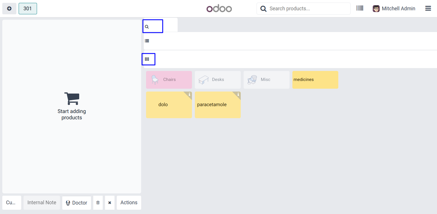 User can see the grid view of pharmacy products in point of sale screen.