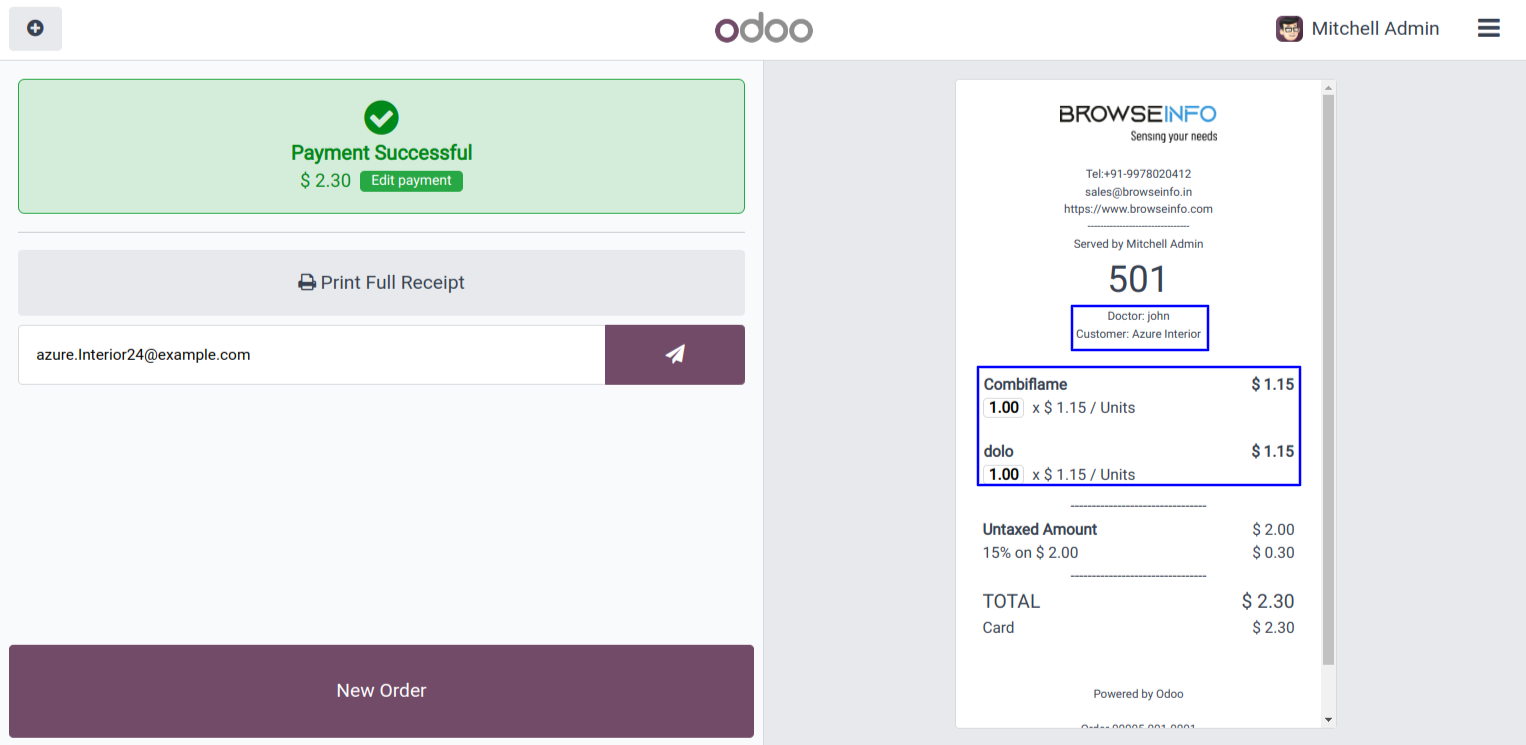 User can see the order should be delete in POS and select the doctor by clicking on 'Doctor' button.