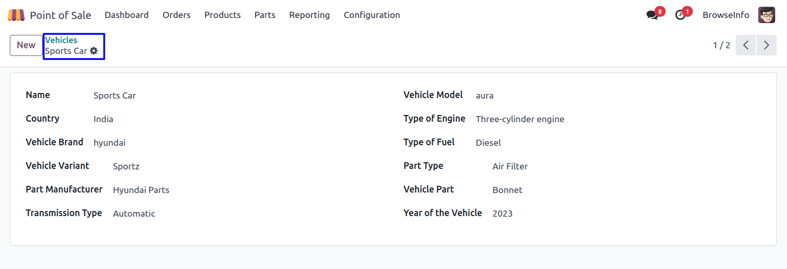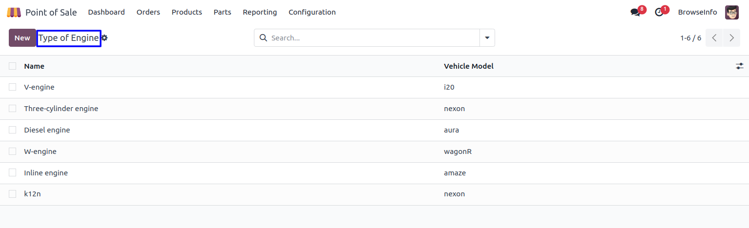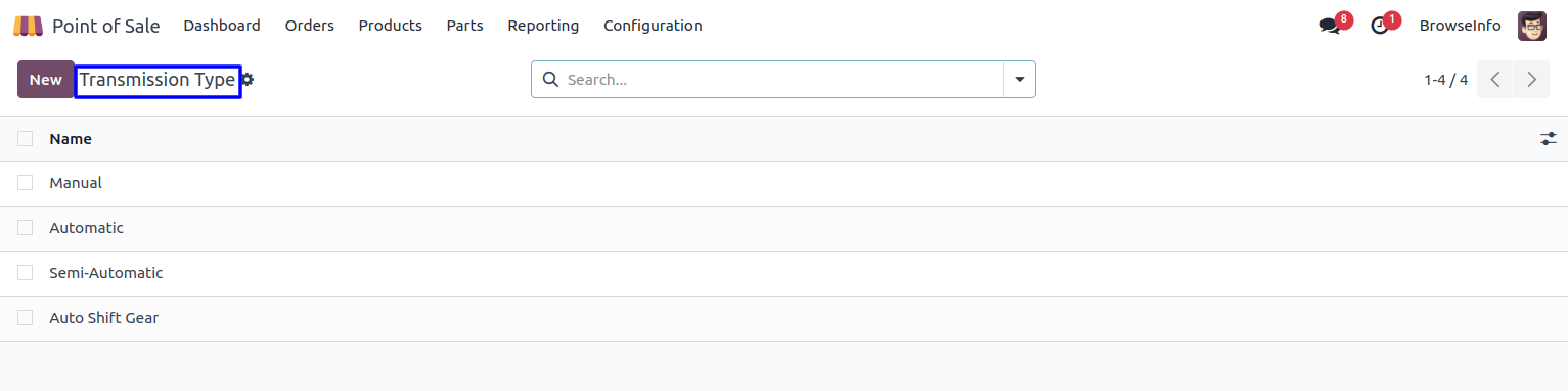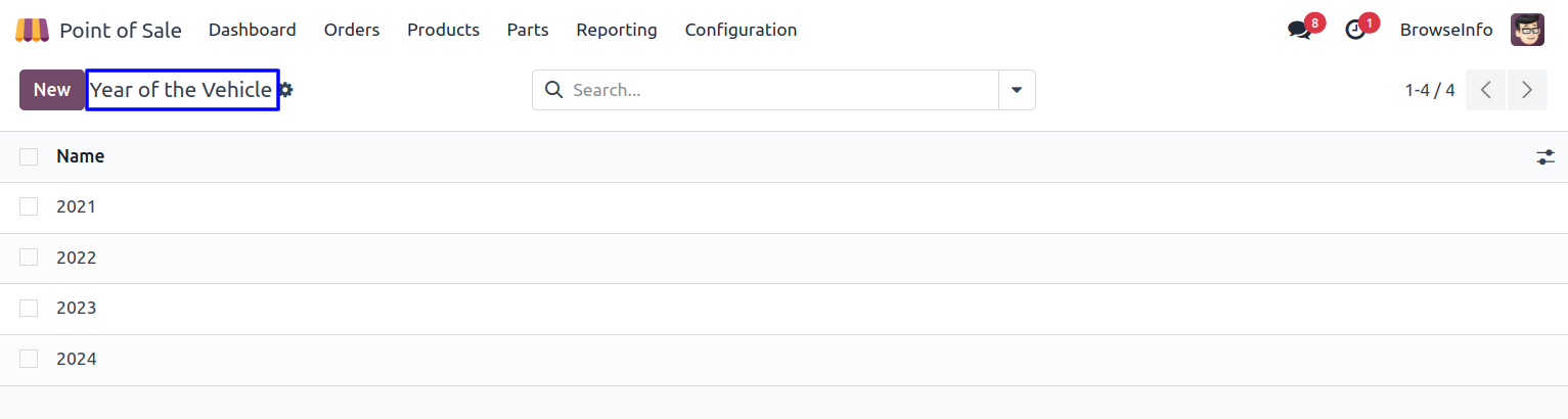 Under Point of Sale > Parts menu user have to create details of multiple parts.