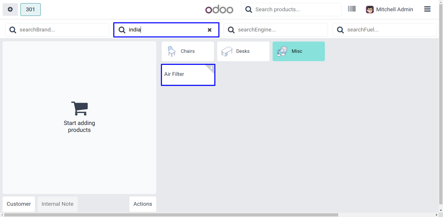 User can view the search bar as per configured position then search the spare parts with helping all the fields.