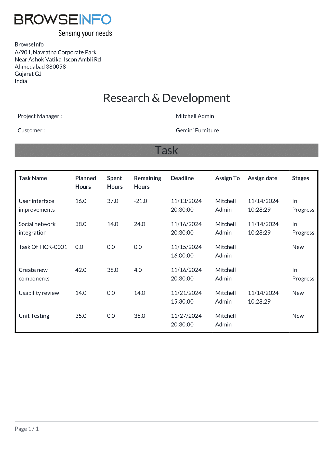 See the detail of task, initial hours and total spend hours.