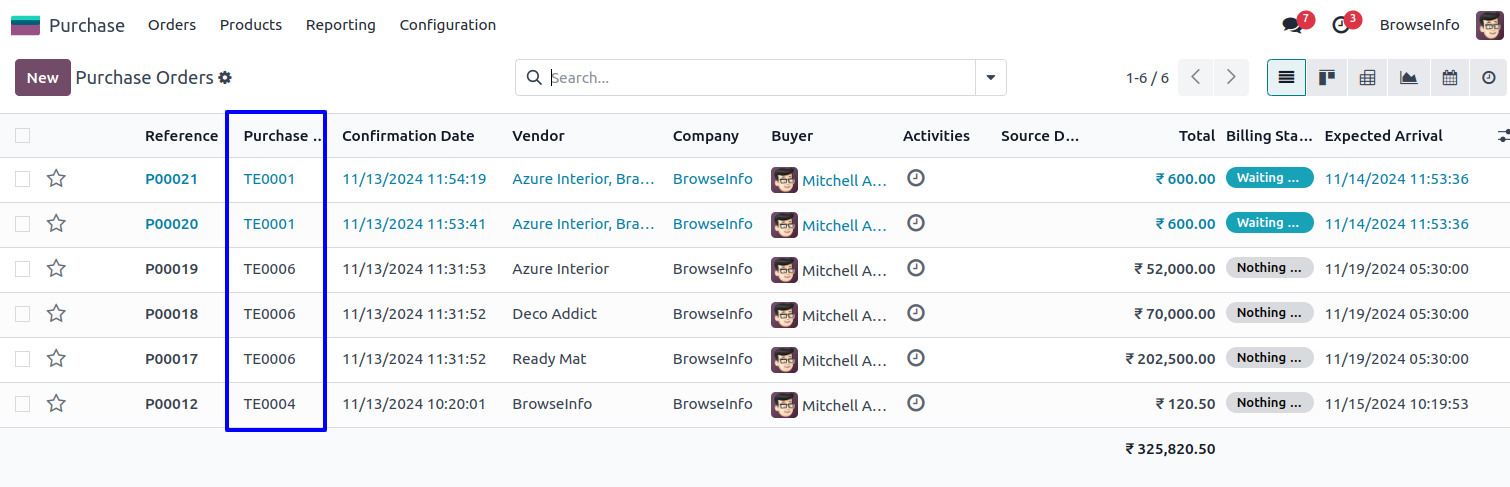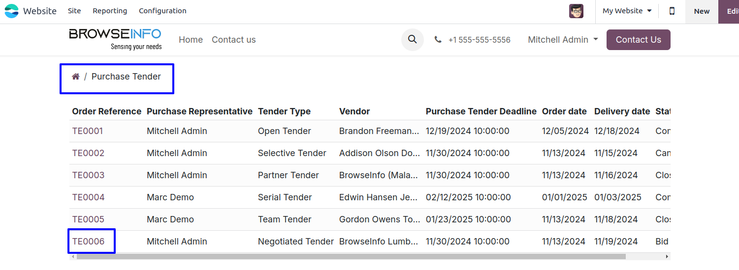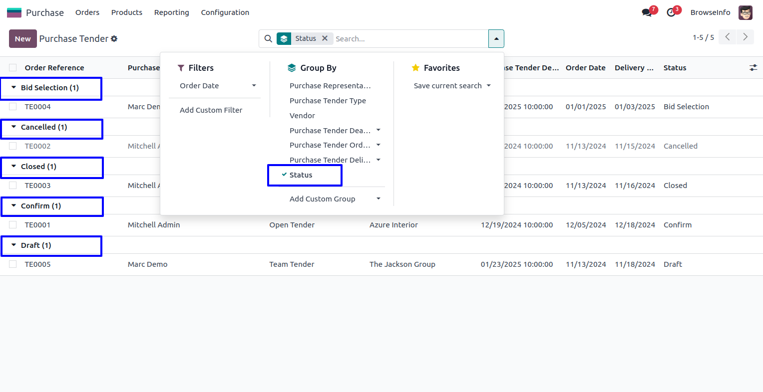 Purchase Tenders in List View