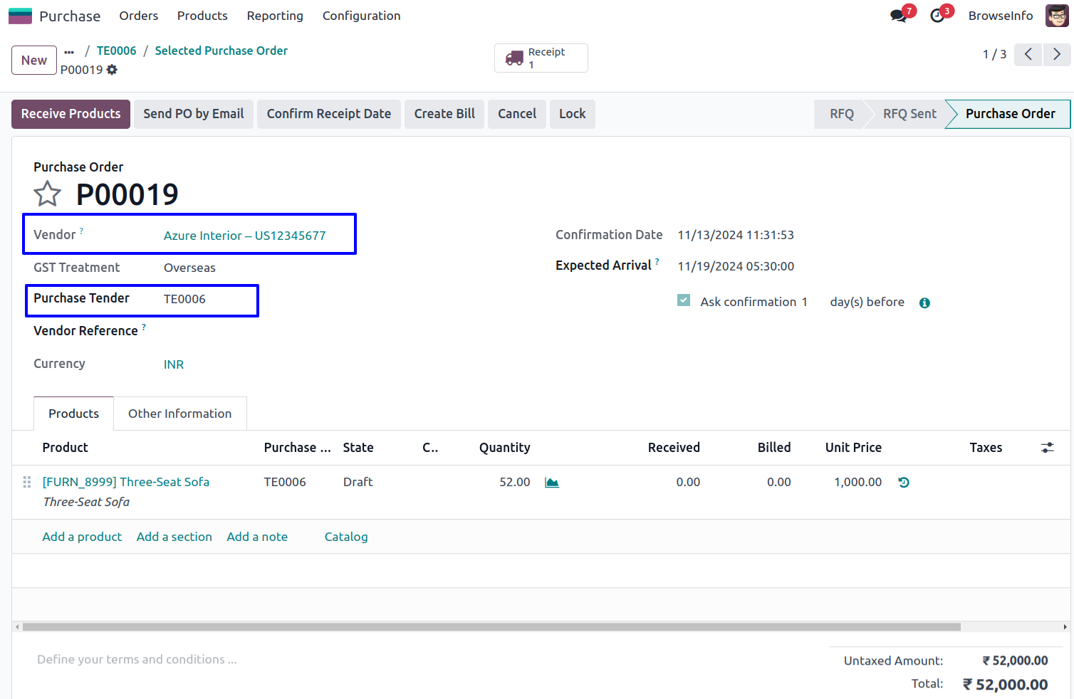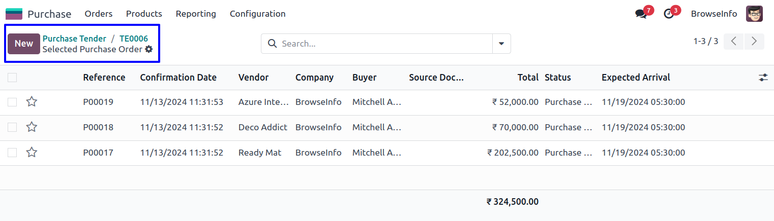Purchase Tender on Purchase Order.