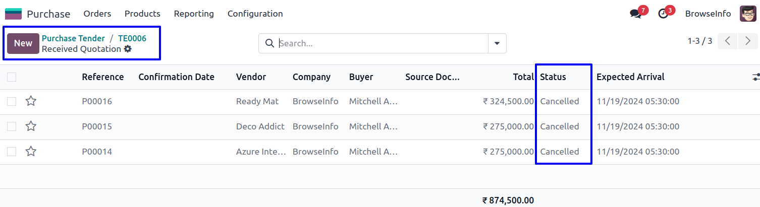 User can also see that old rfq of tender also cancelled.