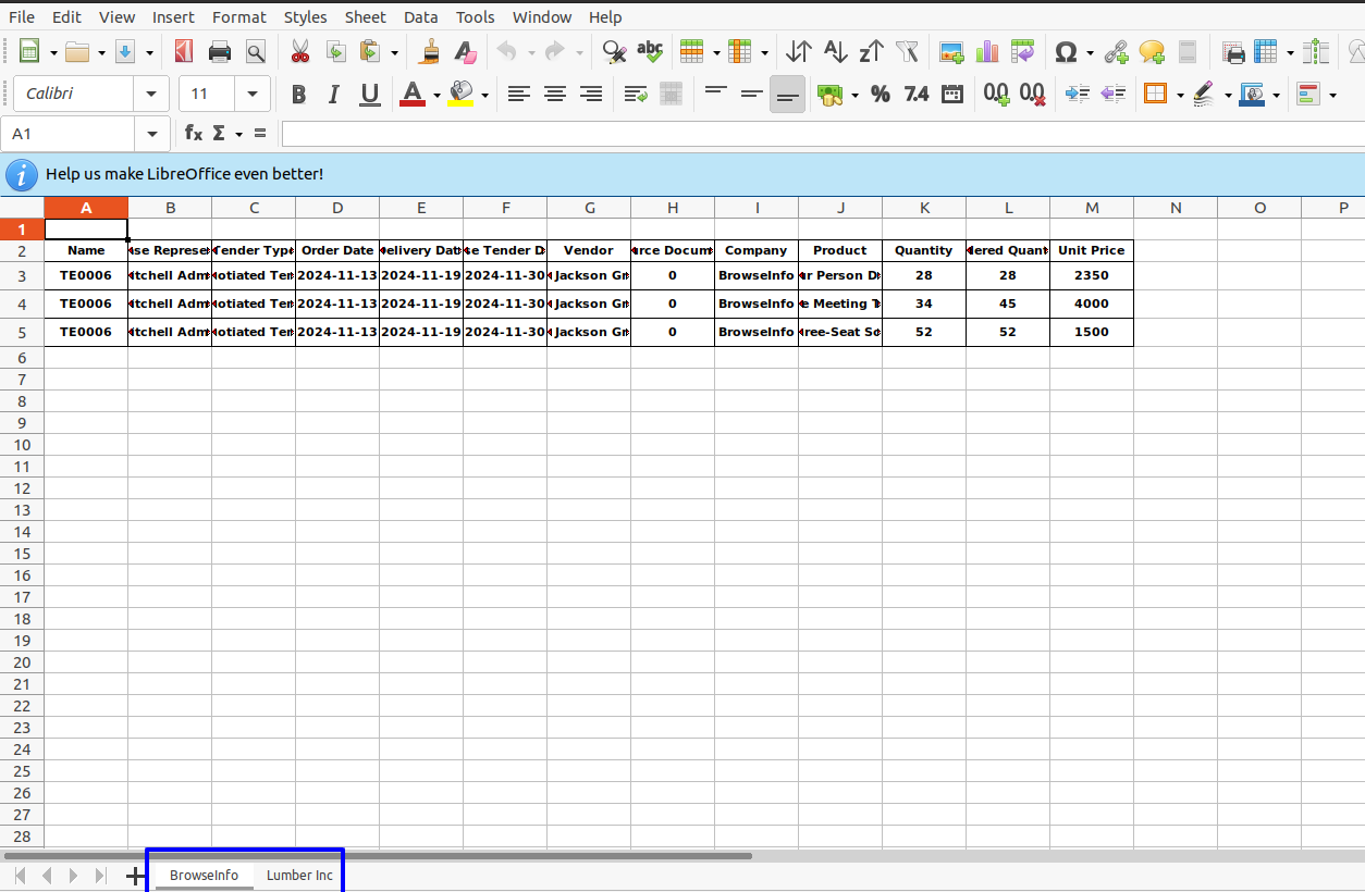 User can see printed purchase tender in XLS format based on selected multiple vendor.
