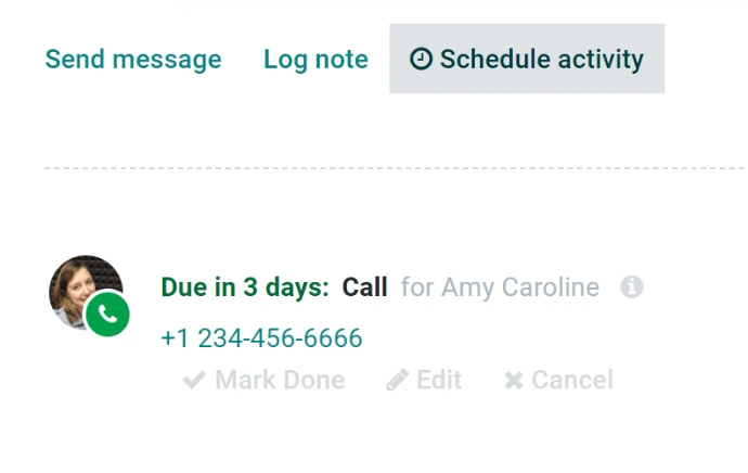Odoo VoIP is fully integrated with Odoo, so you can schedule actions from any app to keep track of everything.