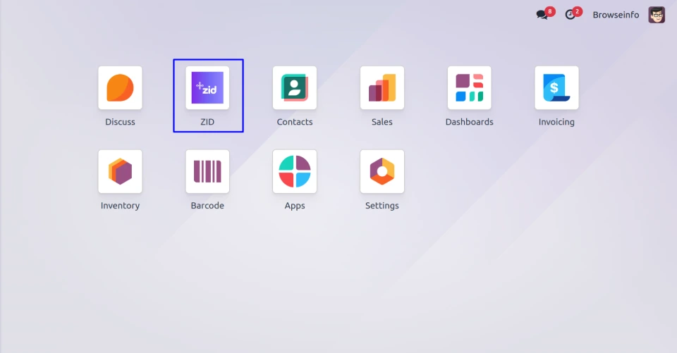 Once access rights are enabled, Users can access the ZID module from the Odoo dashboard and use it easily.