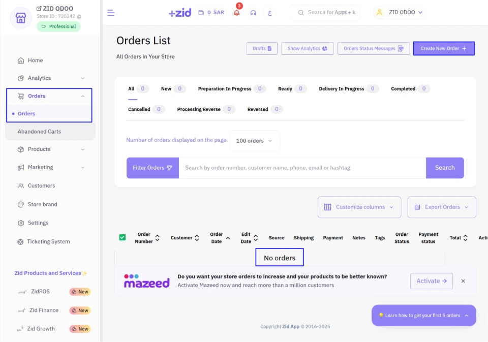 Creating and Importing Orders from ZID to Odoo