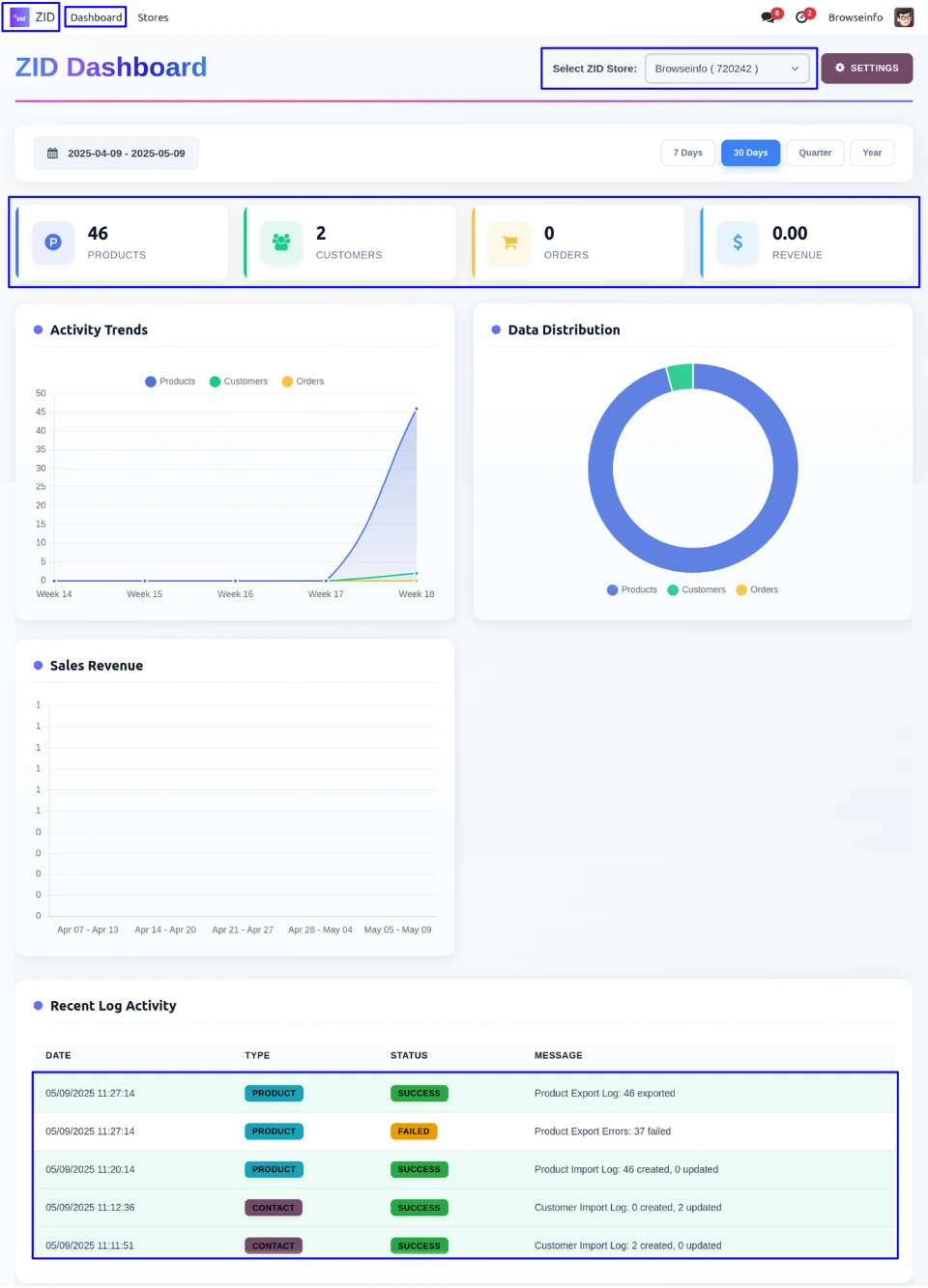 Imported Order, Products & Customer in ZID Dashboard